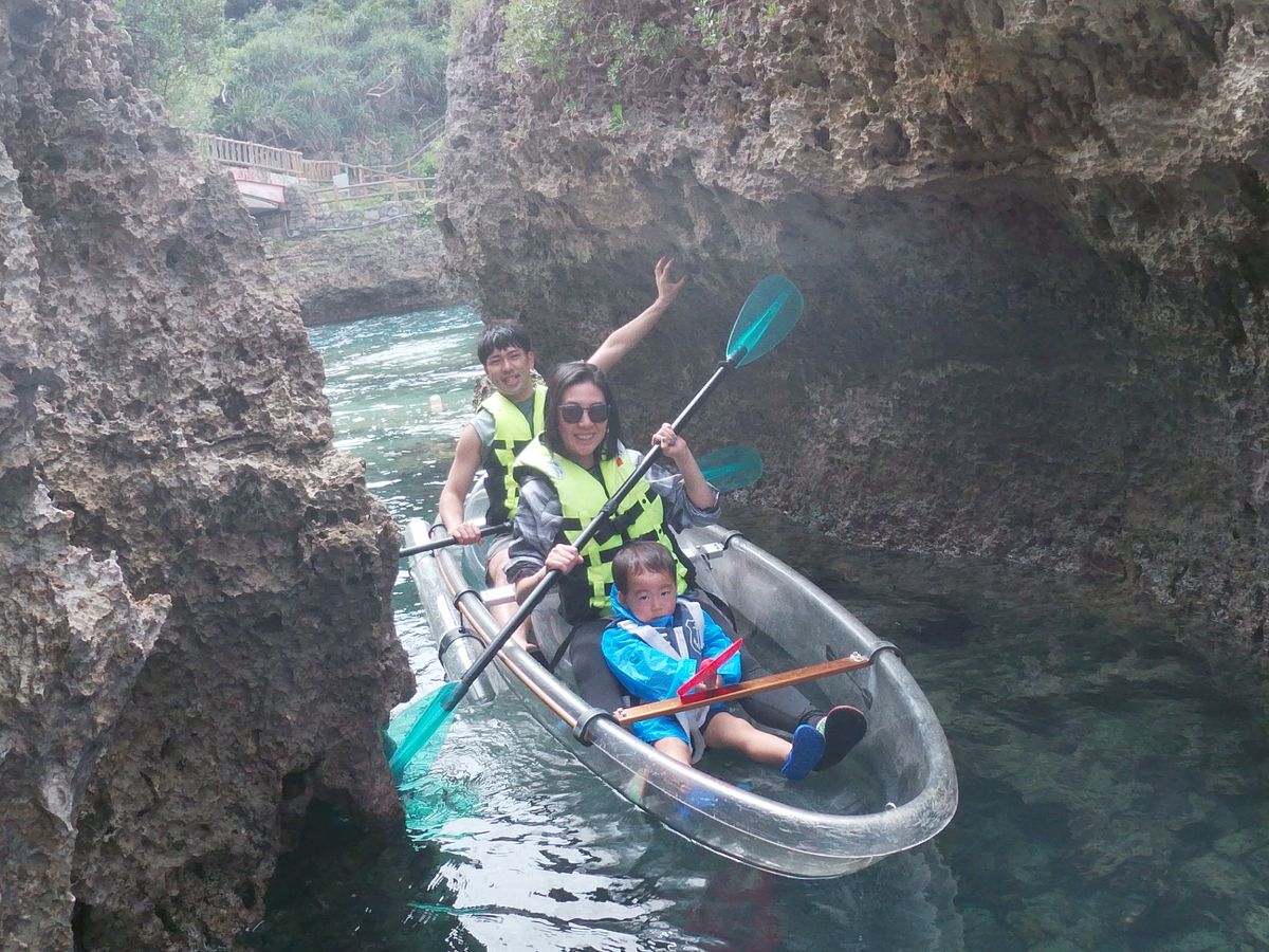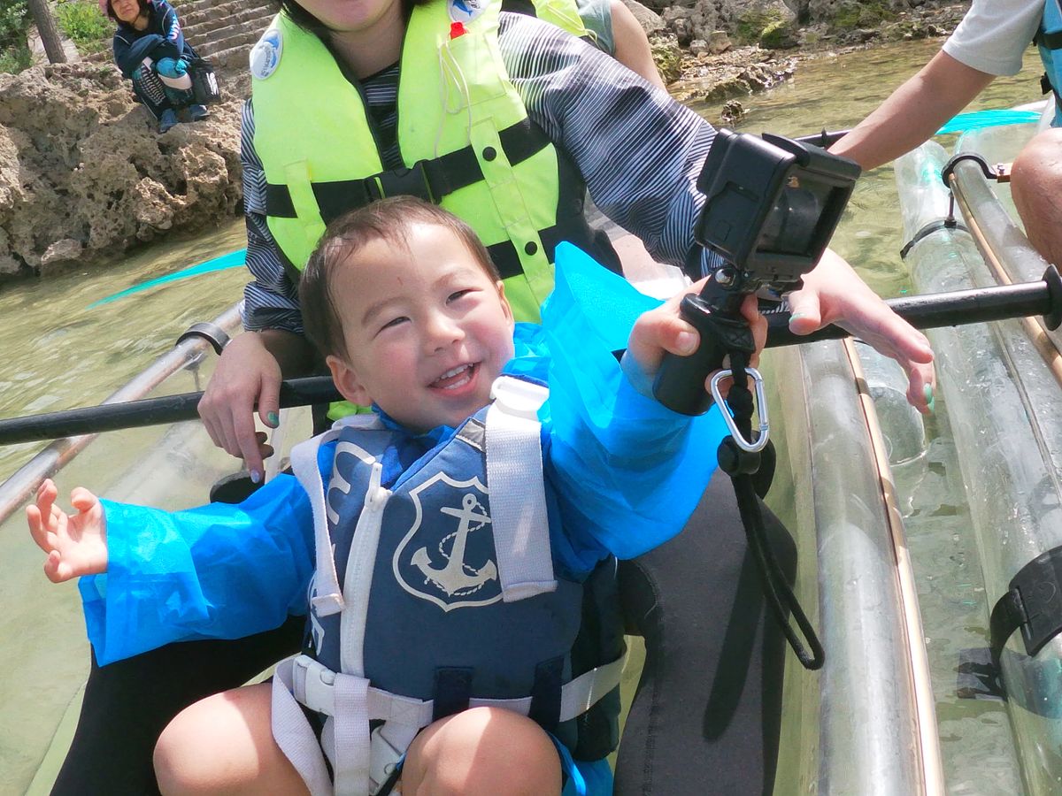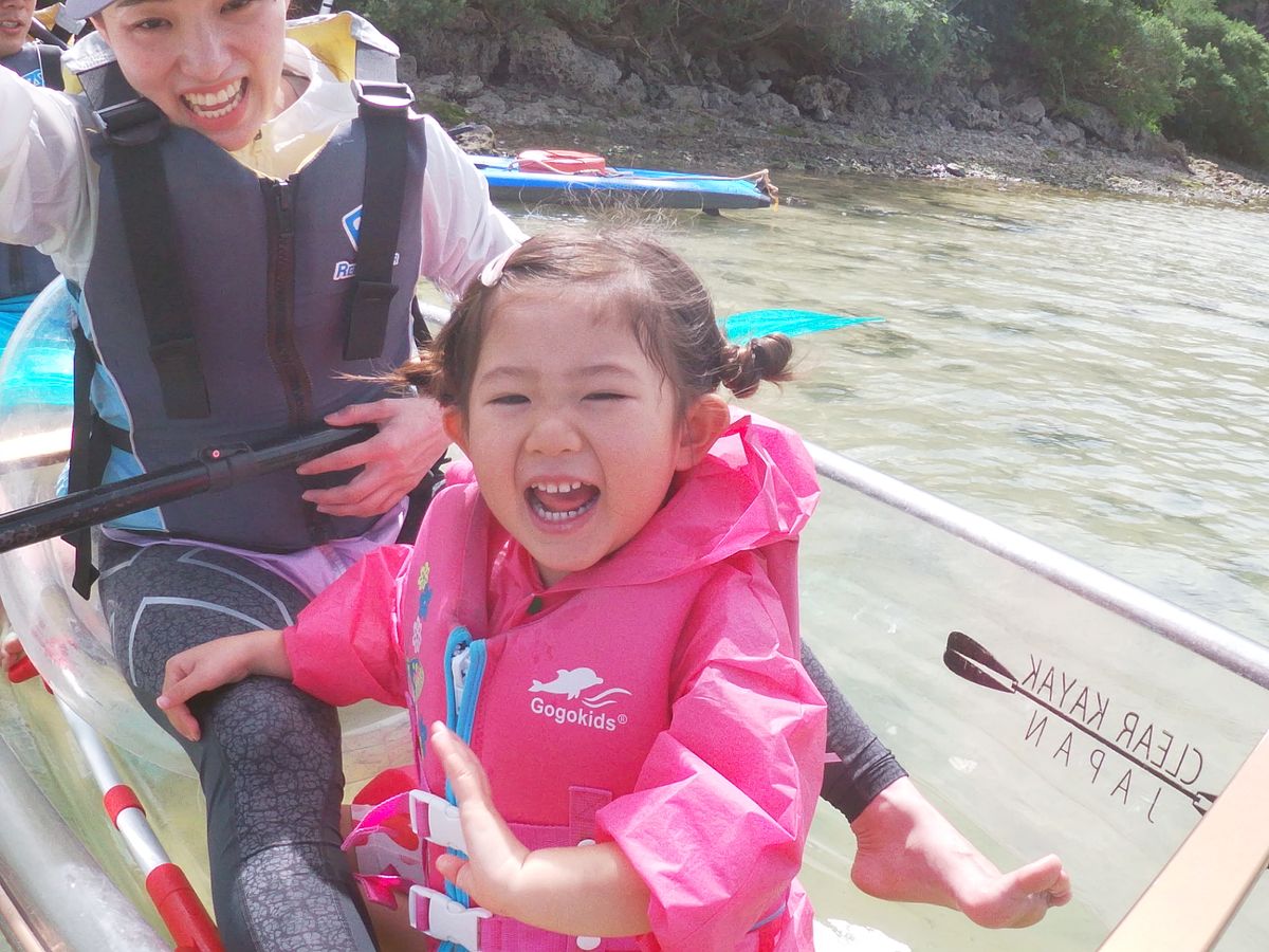2歳と3歳の孫に海を体験させたく、クリアカヤックに参加しました。