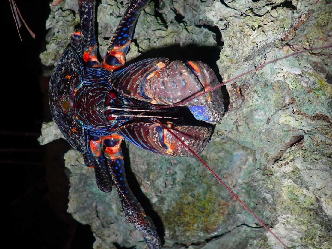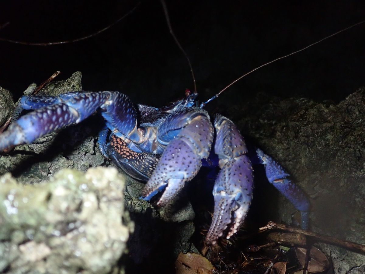 当日は小雨が降る少し悪天候の中でしたが、ガイドさんがヤシガニを2匹も見つけてくださり念願のヤシガニを近くで見ることができました!