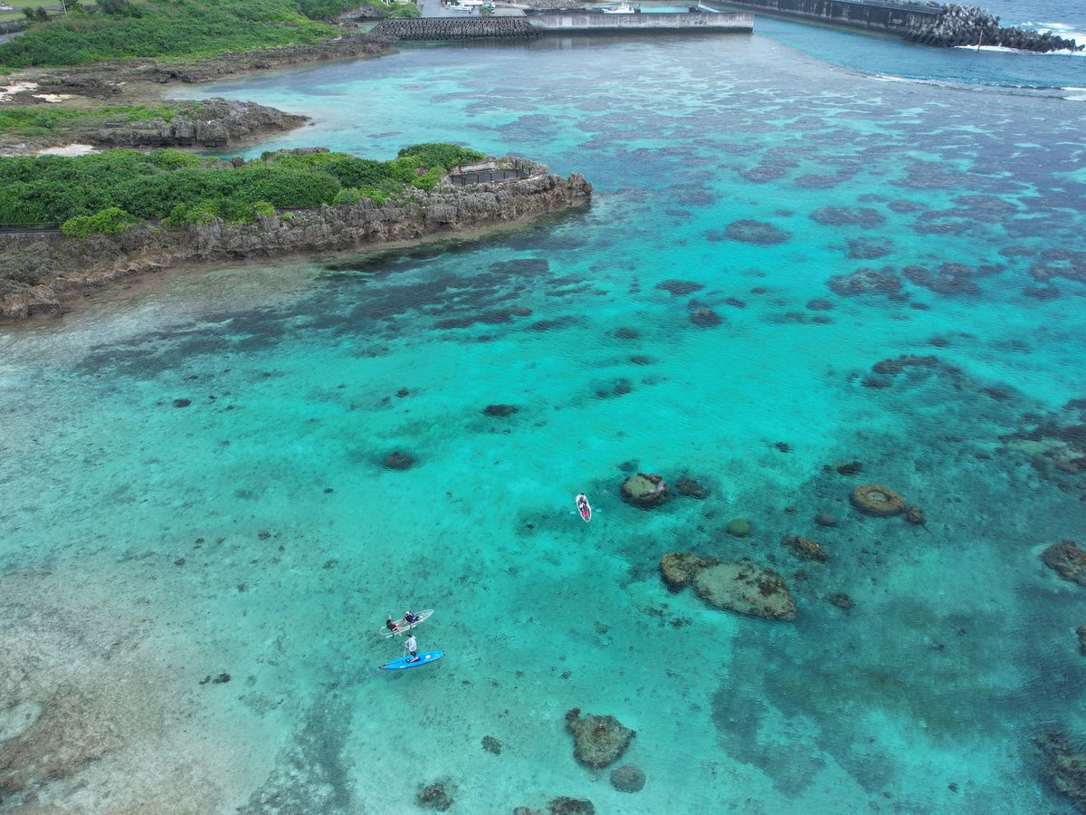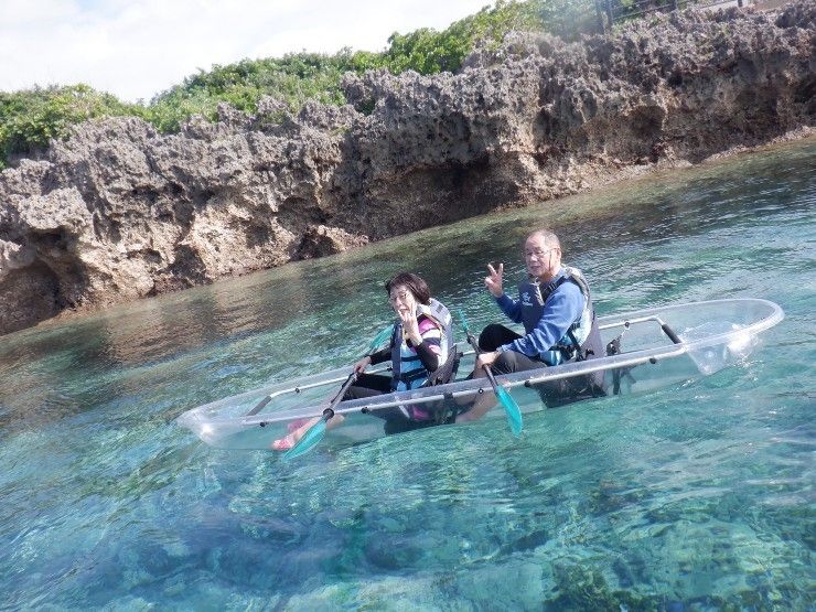 宮古島に行く前にネットで申込しました。初めての体験なので少し心配がありました。参加前日まで薄曇りだったり、少しぱらっと雨が降ったりの天気でしたが、当日は天気に恵まれ素晴らしいカヤック日和となりました。現地に着くとスタッフさんが待機しており色々な契約の説明を聞きました。次にカヤックの漕ぎ方を優しく親切に教えてもらいました。海のスポーツは苦手でそれも年寄りなので、恐る恐るスタッフさんに船を押えて頂き夫婦二人乗りました。慣れるまで、スタッフの方が傍にいてくれたので安心しました。なかなかうまく漕げなくて、ぐるぐる回ったり、岩に乗って進めなかったりで、スタッフの方に助けてもらいました。慣れてくると少し深いところに行き、船から下が透けて見えるので大きい魚や小さな魚が泳いでおり海に潜らなくても見えたので良かったです。スタッフの方がカヤックを乗っている所の写真を何度も撮っていただき、ドローン撮影もして頂き素晴らしい記念が出来ました。後から写真とドローンから撮影した動画を音楽付きで送られてきました。直ぐにそれを家族に送ると皆感動してもらえました。本当に親切丁寧にして頂き、スタッフの方にお礼を申し上げます。