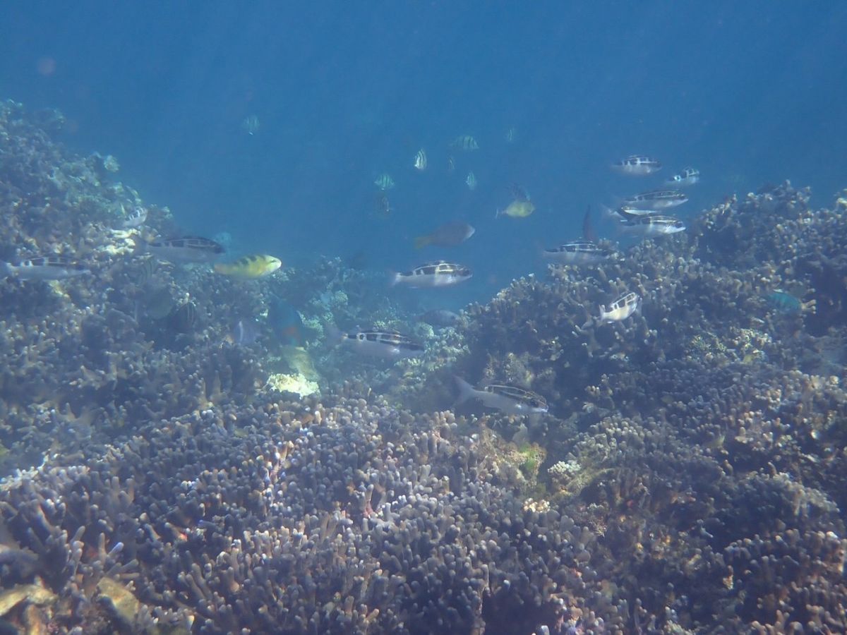 ビーチから泳いで行ったのですが、当日は干潮で遠浅だったためウミガメと遭遇したのも足がつく深さ。初心者の友人も安心して楽しめたようです。