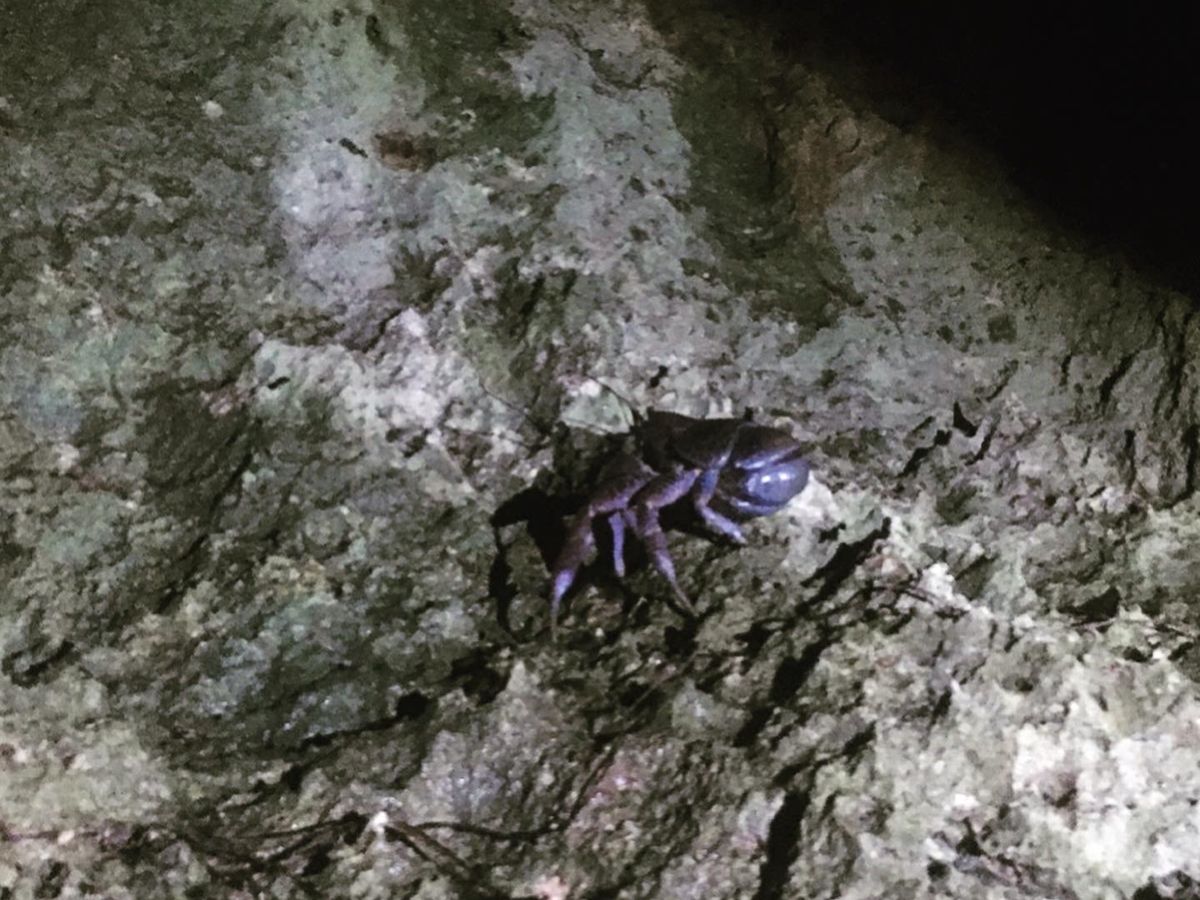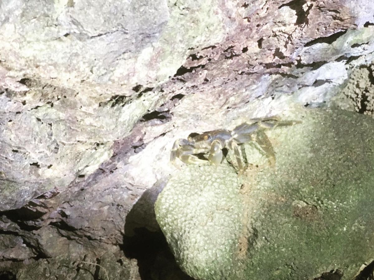 あいにくの曇り空で、星空は全然見れなかったですが、ヤシガニ4匹と蛍(の幼虫??)、鍾乳石が見れて大満足でした!!