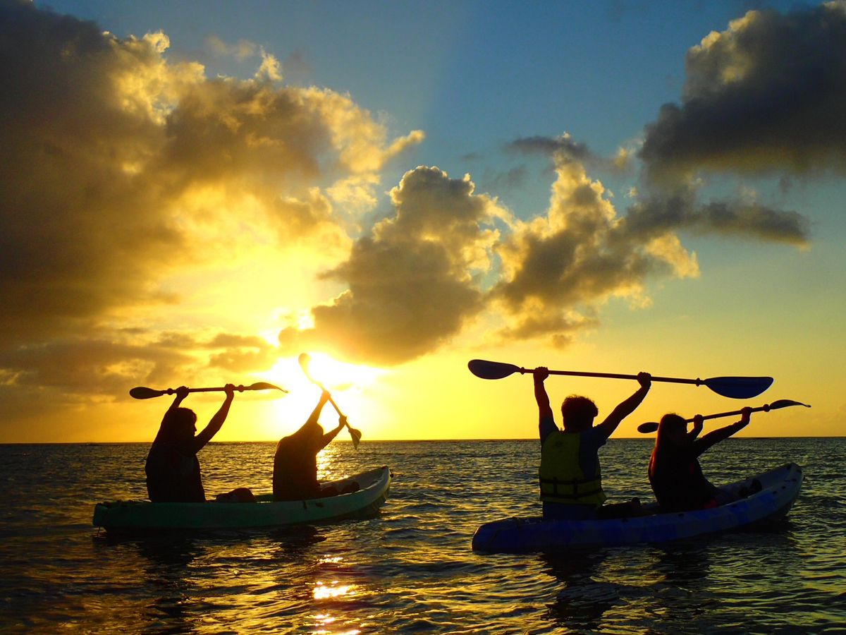 今回初めての姉妹夫婦の沖縄旅行にこちらのサンセットシーカヤックをさせて頂きました。台風が近づいていたためもしかしたら、できないかも、もしくは、せっかくのサンセットがみれないかも、と心配しておりましたが、雲は、多くありましたが、日が沈む時間前とてもきれいなサンセットがカヤックにのりながら見ることができ、本当にいい思い出になりました。
