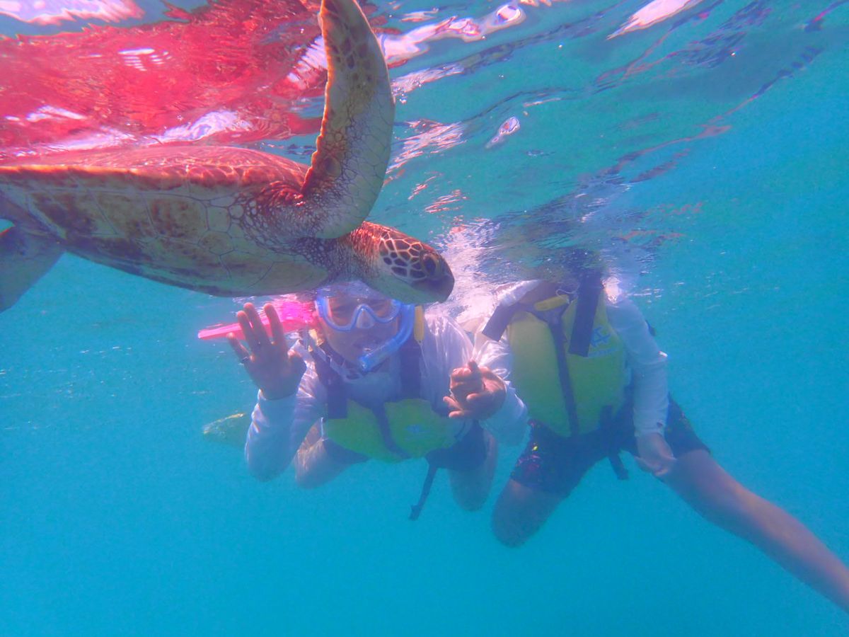 シュノーケリングは、ちょうど干潮だったのでサンゴ礁がとても近く色とりどりの魚も見れて、とても感動しました。ウミガメとも遭遇できて大満足でした。