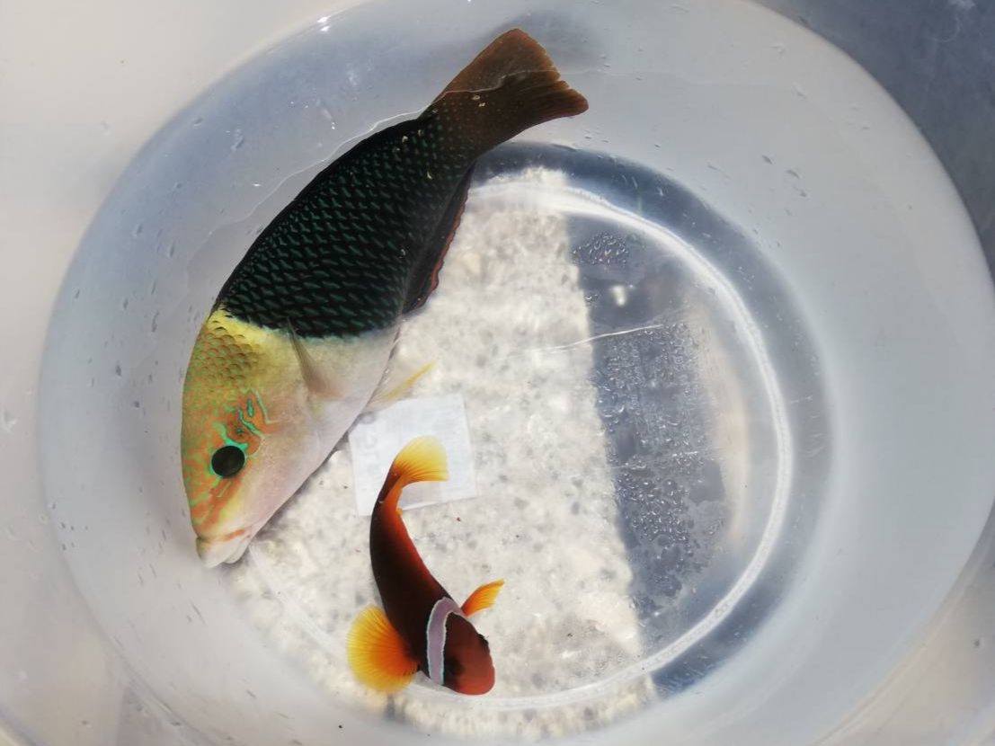 ニモの仲間(ハマクマノミ)が港で釣れることは本当に珍しく、私も驚きました。きっと、お客様が「持っている人」なんだと思います。