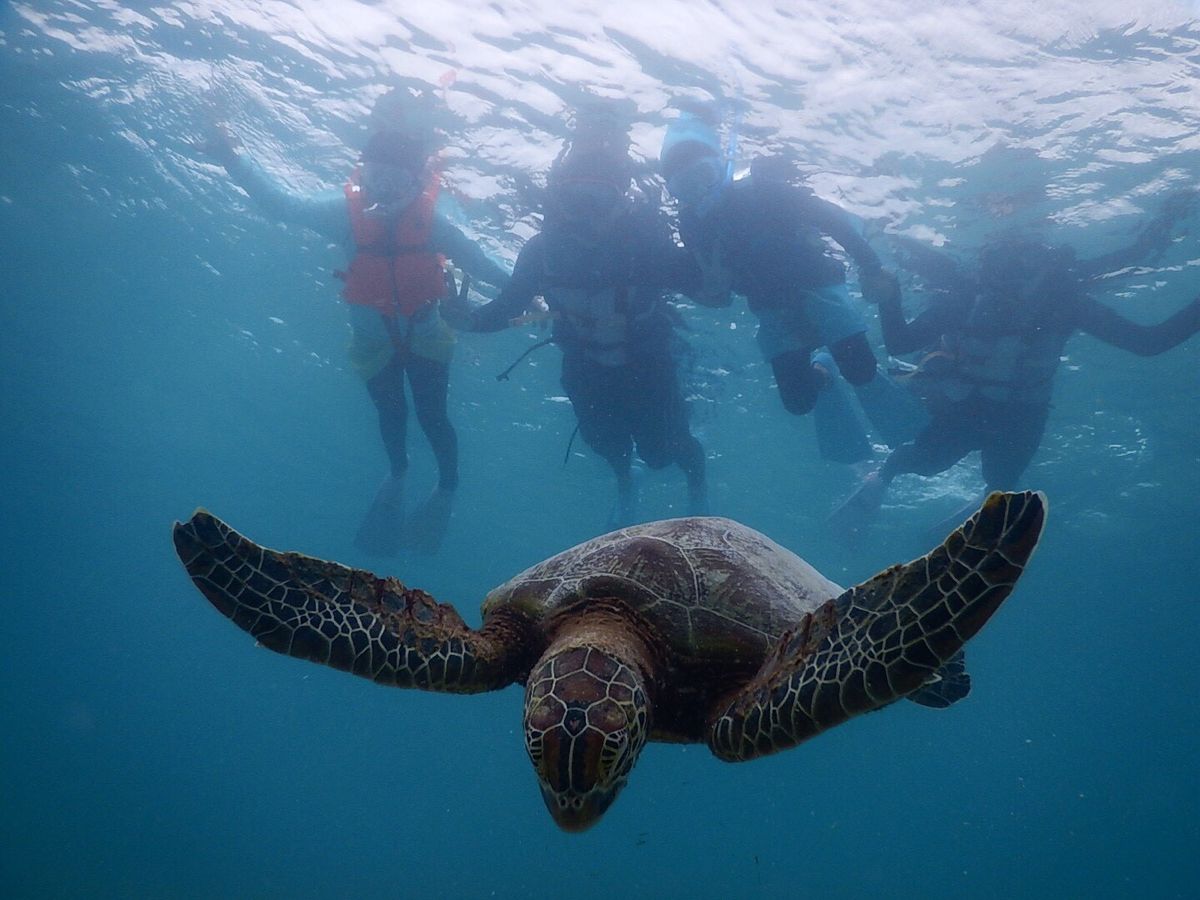 ウミガメは確実に見れますし、シュノーケリングやライフジャケット着てても泳ぐのが不安な人にはガイドさんが浮き輪に捕まらせてくれるので安心ですよ!