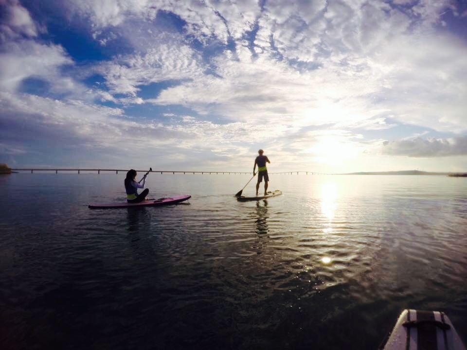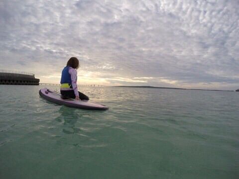 はじめての宮古島、はじめてのSUP。当日は、ベストな天気でした!サンセットビーチでガイドさんと待ち合わせ。保険代600円をお支払し、用意してくれているライフジャケットを着用。ビーチでボードの乗り方や、パドルの使い方などの指導を受け、いざ海へ。この日は波が無かったので、ボードも乗りやすく、最初はバランスをとるのに必死でしたが、少し慣れると、透き通った海の中を見たり、ボードの上で寝転んだり、自由なポーズでリラックス。素晴らしくキレイな夕陽が海に沈む様子を見ながら、楽しく体験することが出来ました。動画プレゼントはありませんでしたが、防水カメラを持っていなかったのですが、ガイドさんが沢山写真を撮ってくれて、後で見ることが出来てそれも良かったです。帰るときには宮古島の美味しいお店も教えてくれて、とても親切でした。また宮古島に行ったら参加したいです。ありがとうございました♪