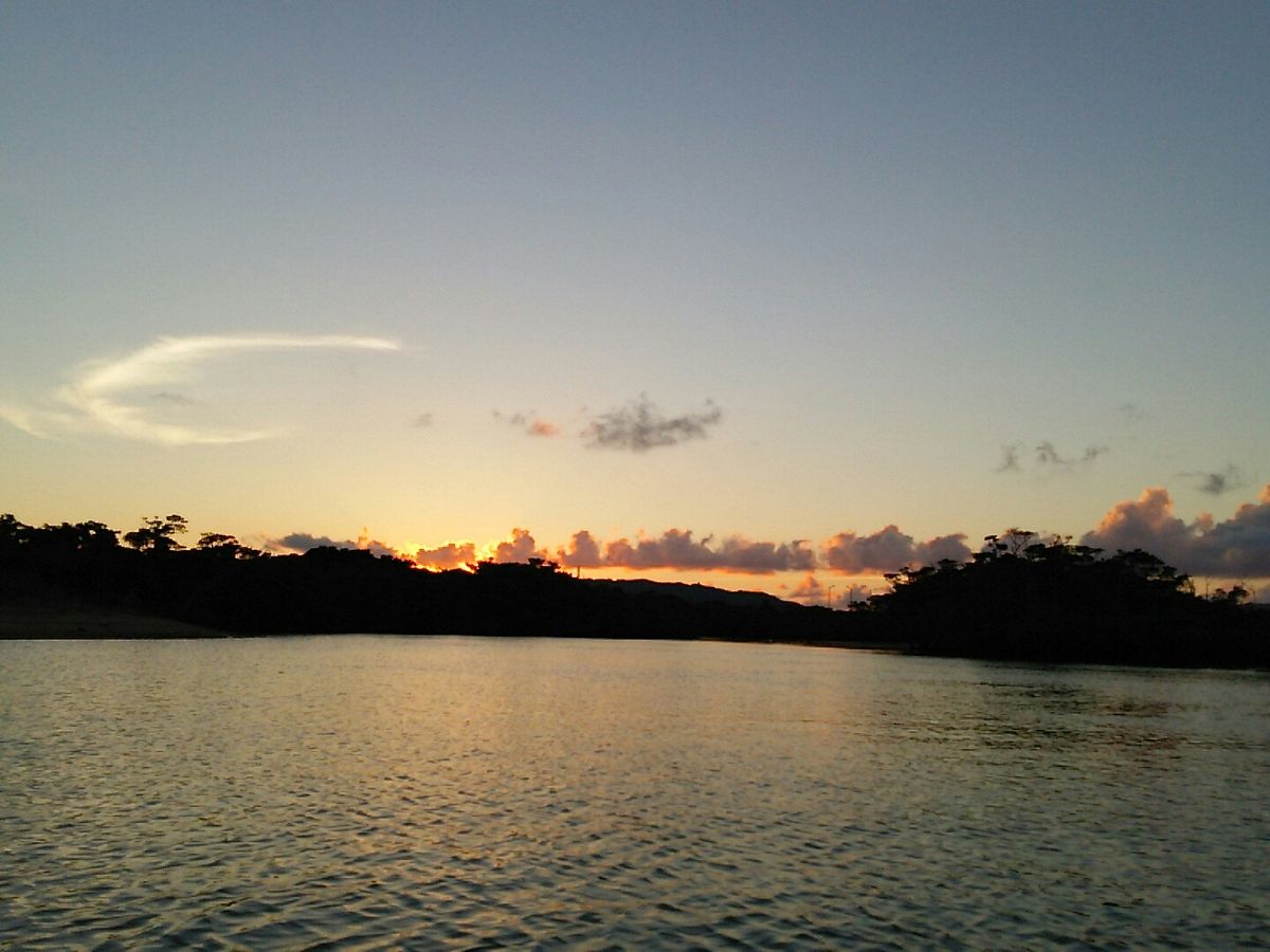 綺麗な夕日を見ながらマングローブ林の方へ。