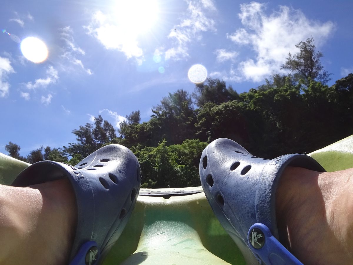 漕いでる途中に、自転車と同じで水の抵抗の関係で前のカヤックのすぐ後ろについていけば楽に進める事に気づき、それ以降遅れを取ることはなくなりました。