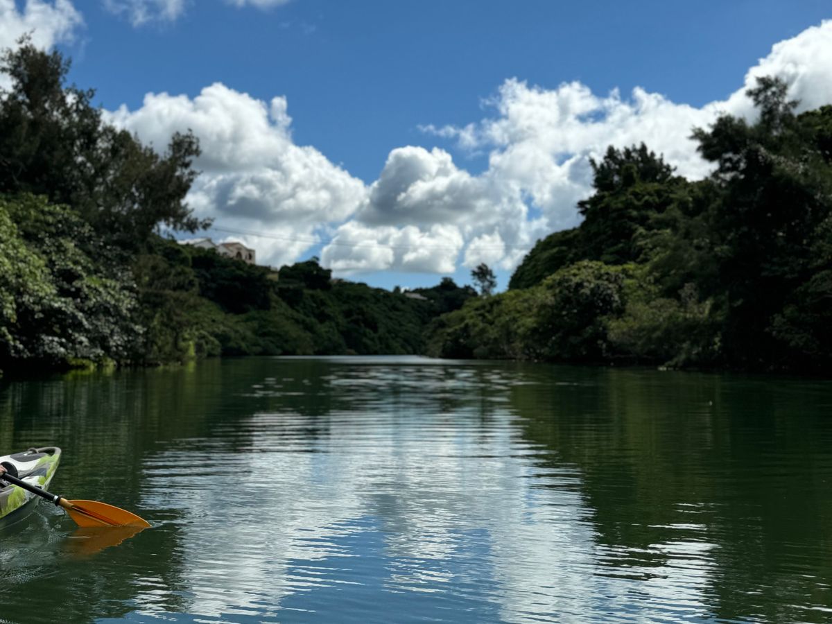 比謝川のカヤック体験では、静かな川を漕ぎながら自然の中を進むことができました。ゆったりと流れる川の上で風を感じながら自然をみて、周りの景色を楽しむことができました。川岸には美しい植物や野生生物がたくさん生息しており、自然の摂理の力を実感することができました。