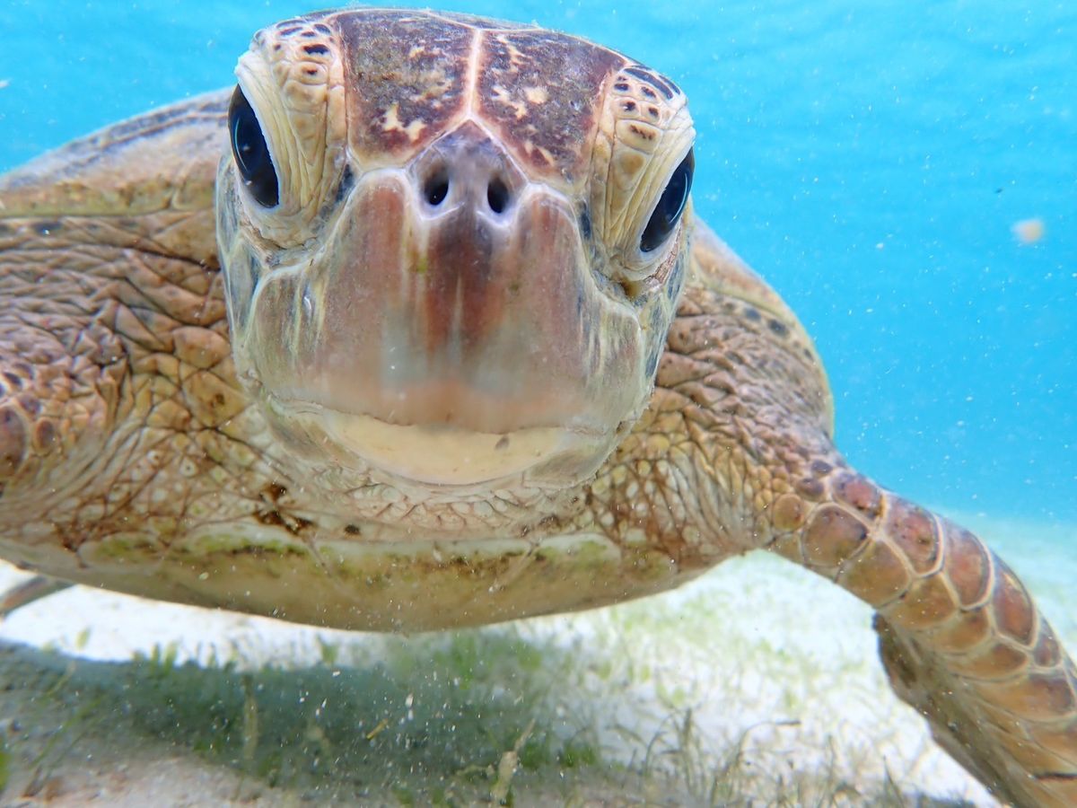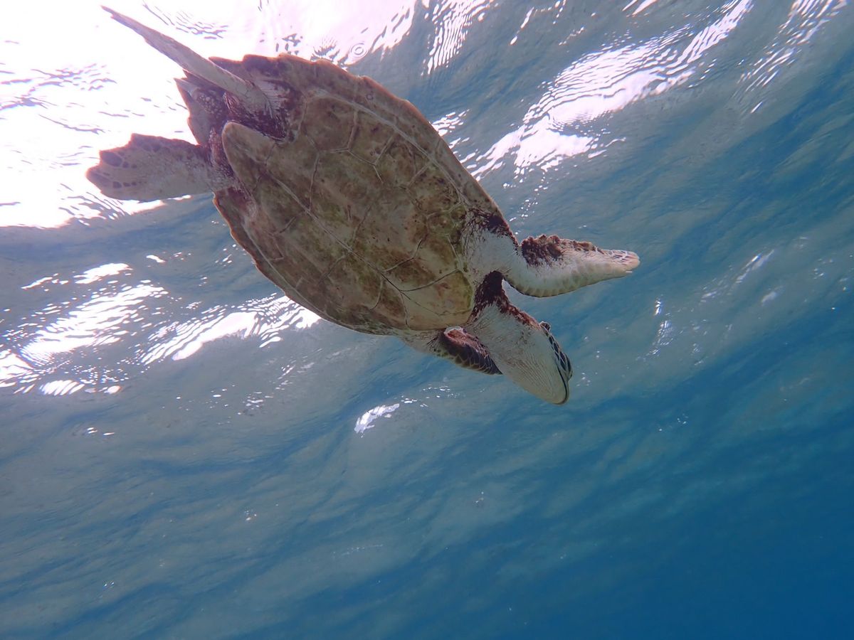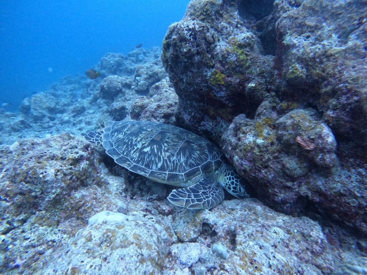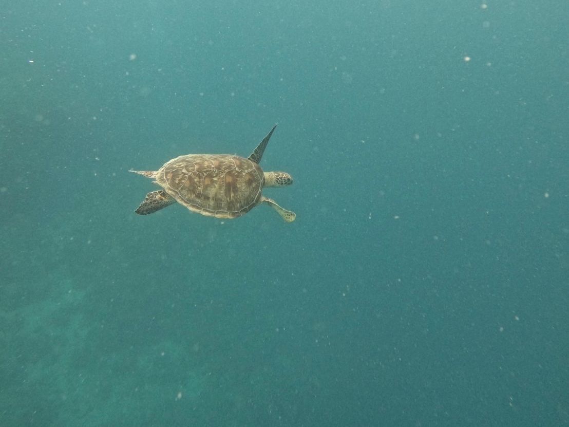 まさか本当に海亀が見られるとは。しかも沢山。一匹見てたら身体の脇に別のが寄ってきてぶつかるかと思った。必死に藻を食べて、息継ぎで海面に顔を出すのが可愛い。案内してくれたコウヘイさんも親身に世話をしてくれました。ありがとうございます。