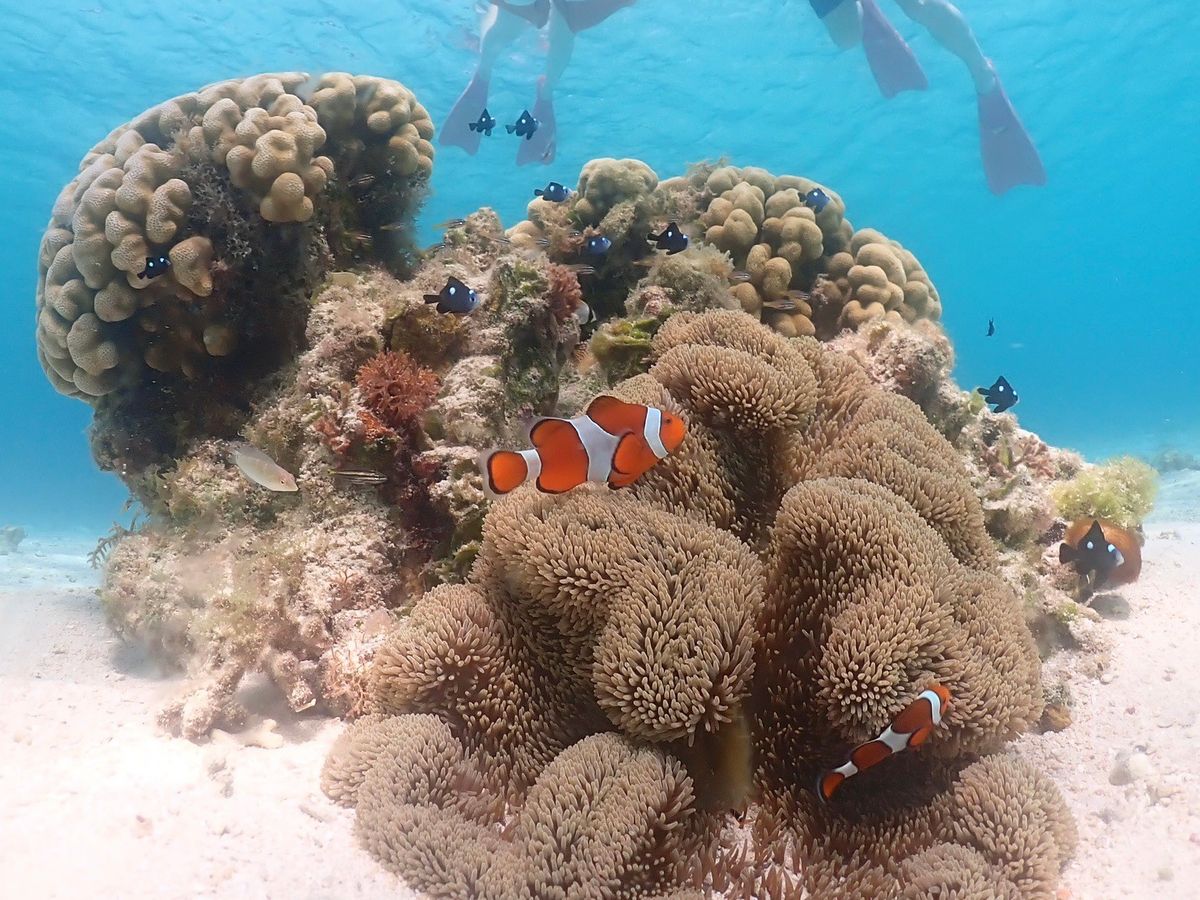 ある程度沖合に進むと、美しいサンゴと熱帯魚たちが目の前に。まるで、ニモの世界に入り込んだようでした。