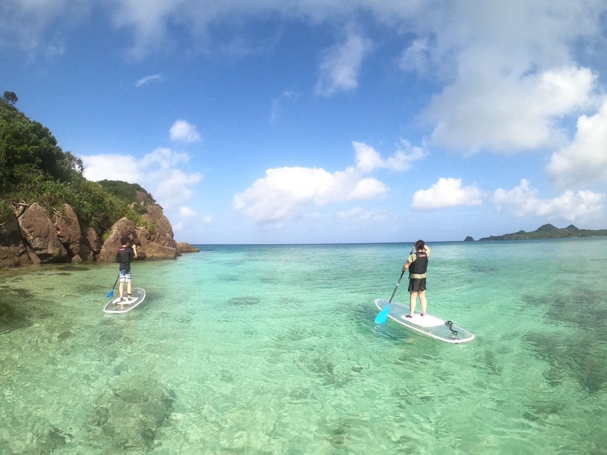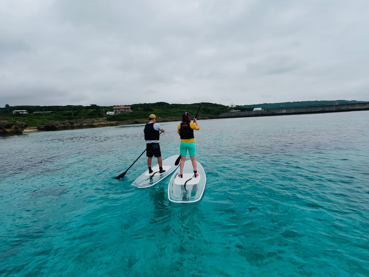 とても気さくなインストラクターさんが漕ぎ方を優しく教えて下さり、初めてでも楽しい時間を過ごすことができました。時々小雨も降り風の強い日でしたが、イムギャーマリンガーデンの波は穏やかで、海上からの景色も楽しめました。またクリアサップなので、立ったままで足元の海の中の景色も同時に楽しめて、とても良かったです。カクレクマノミもバッチリ見れました。ドローン撮影していただいた写真や動画には、イムギャーマリンガーデンの素晴らしい景色の中で楽しむ自分達の姿が写されていて感動しました。次はお天気の良い日に体験してみたいです。
