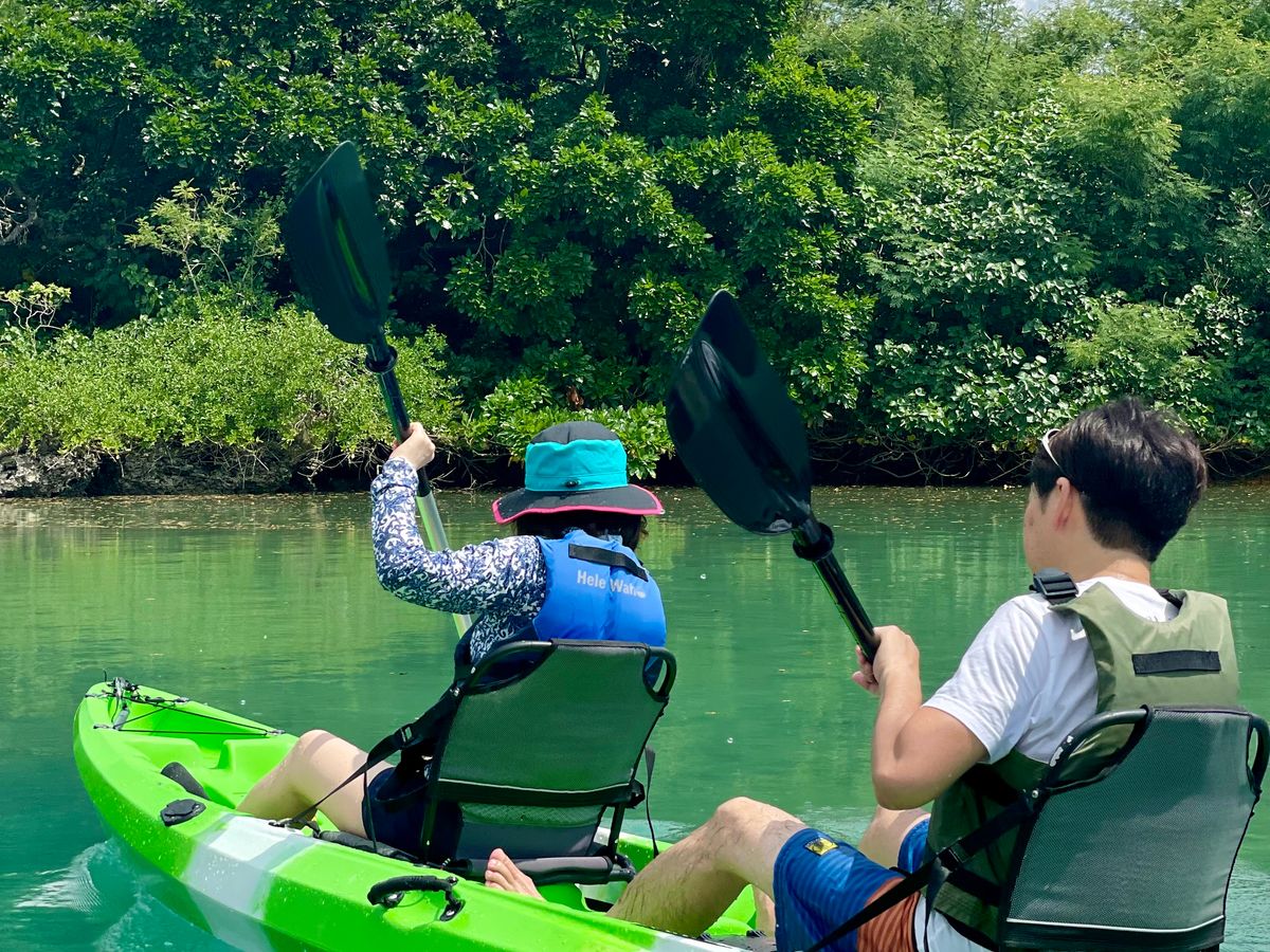 夫婦2人で参加しました。心配していた天気も綺麗に晴れて、川の流れも非常に穏やかでした。2人ともカヤック自体は初めてではありませんでしたが、コウモリやシャクシギ、シオマネキやハゼなど、マングローブに生息する生き物たちをたくさん観察することができ、貴重な体験となりました!