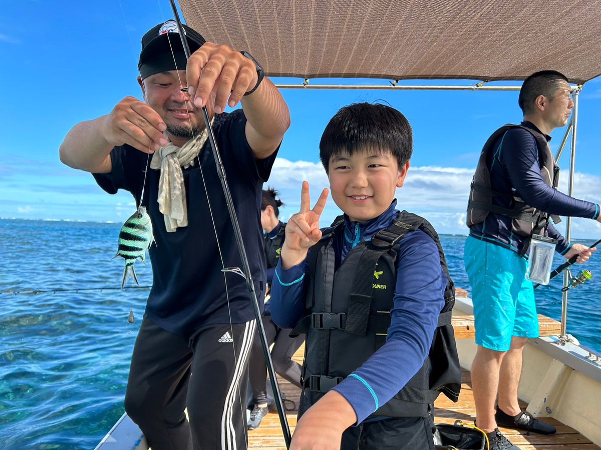 前半の釣りは綺麗な魚がたくさん釣れて子供達も大喜び!ガイドさんが魚の説明もその都度してくれるので名前も覚えられました。後半のシュノーケリングは初めてだったので皆緊張していましたが、こちらのペースに合わせて準備していただき、子供達も海に入ることができました。綺麗な海と魚がたくさん見られてあっという間でした。