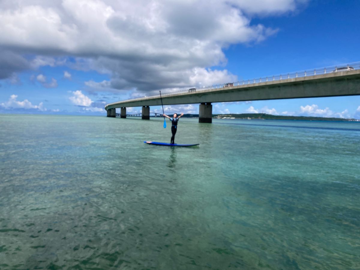 初めてのSUPでしたがとても楽しめました!海もすごく綺麗でユニの浜は感動します。たくさん写真やドローンを使って動画も撮ってもらえます!最高でした!!