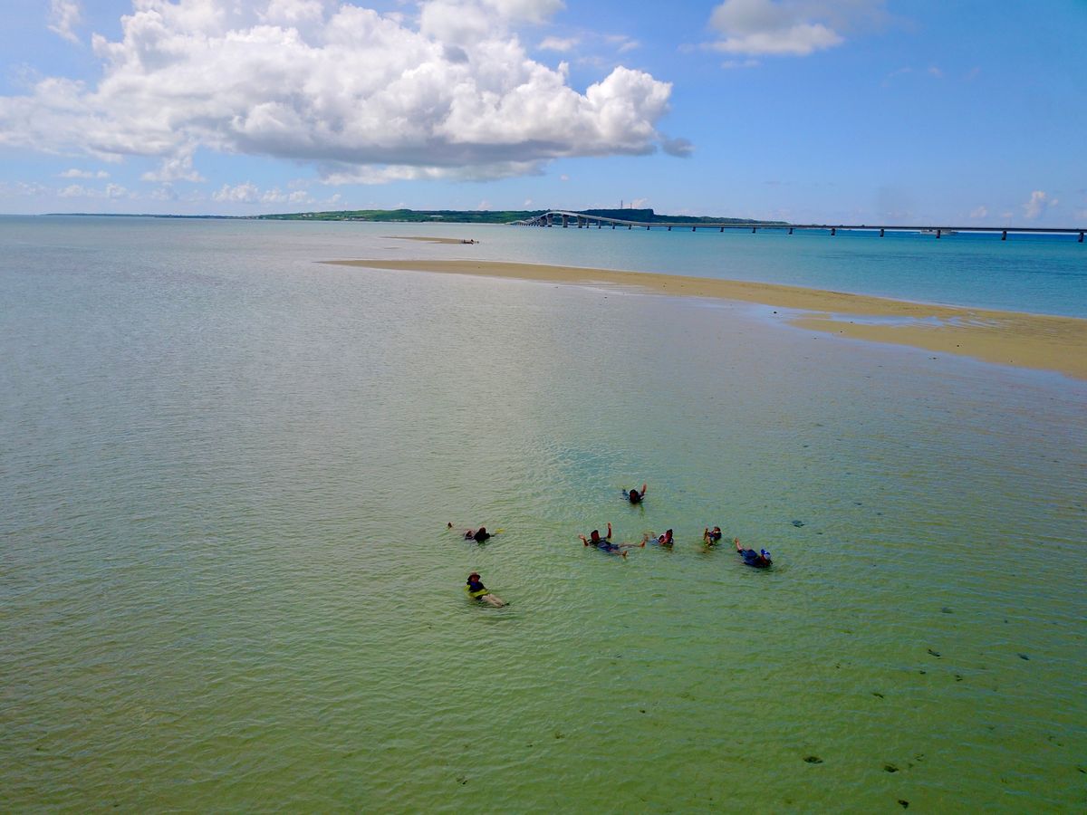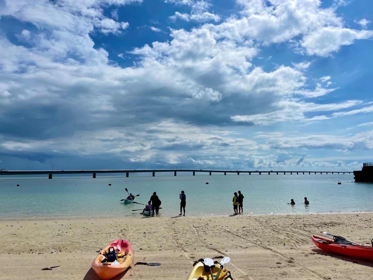 まず、自己紹介→カヤックの乗り方→いざ出発20〜30分漕ぎます(景色見たり、写真撮ったり、あっという間です!伊良部大橋の下をカヤックで通過できるので、絶対オススメ)→ユニの浜に到着後は、感動のみです、美しい景色が広がっていました!30分位の自由時間でした。砂浜を歩いたり、海に浮いてみたり、そんな遊んでいる間に、あみさんがドローンで動画、すぐるさんも写真を撮ってくれます!すぐるさんのご配慮で私達はほとんど人のいない砂浜へ上陸できました。嬉しい!