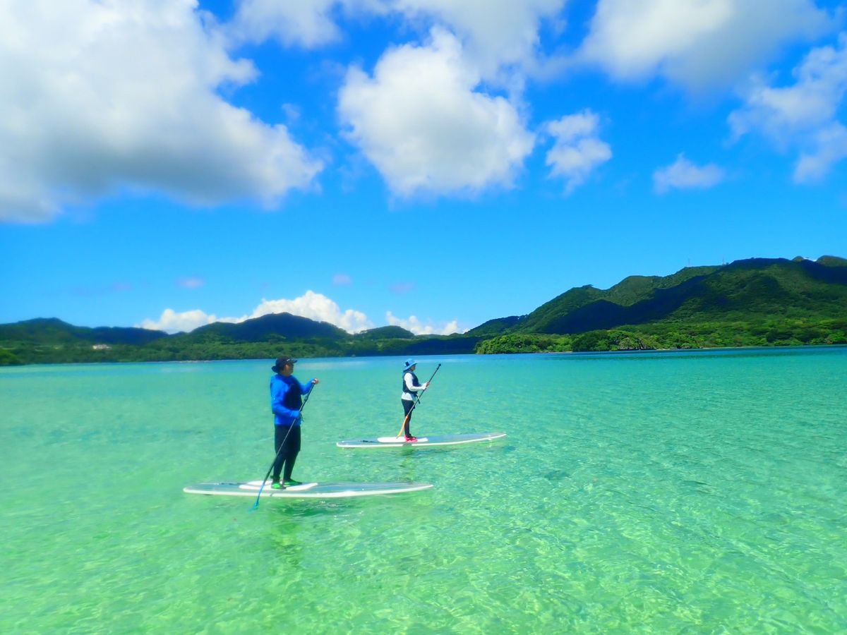 大学同期3人で参加しました!当日は天気が良くてすごく綺麗な川平湾を見ることができました。サップは全員初めてでしたが、マッチョで面白いお兄さんが優しく教えてくれて、すごく楽しむことができました!日本有数の水の上を渡ることができて最高の思い出になりました!