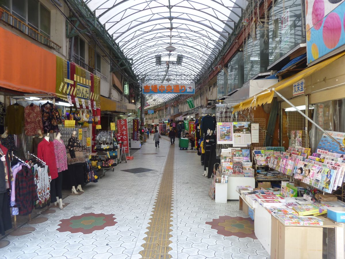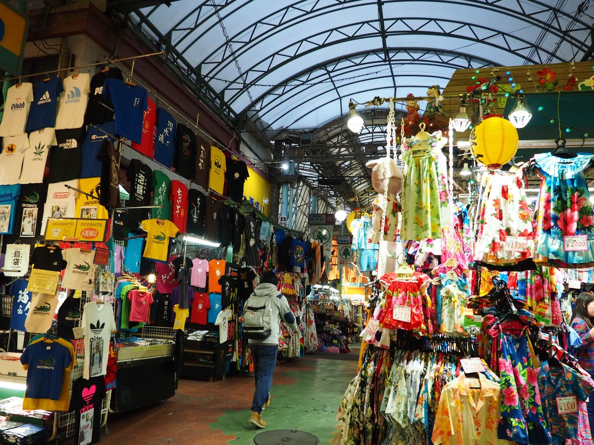 東南アジアを思わせる衣料品市場や、沖縄各地の動物が頭上にそびえる通りなど、