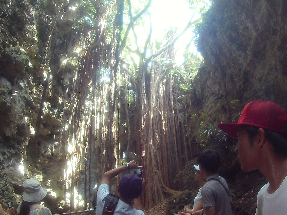 谷の入り口のケイブカフェ。外の喧騒から離れて、とても涼しくこれから古代の谷を散策するんだという気持ちを盛り上げてくれます。ガイドさんの説明もわかりやすく、途中の虫や植物についても丁寧に教えてくれます。暑いときに90分歩くなんて普段はありませんが、最後まで楽しく興味を持って歩くことができました。歴史的にも貴重な谷ということでお勉強にもなります。また谷の奥にある大きなガジュマルの木。ほんとに大きいです。圧倒的な大きさです。一度、見る価値あります。虫よけは現地で用意されていますが蚊にさされます。気になる方は念入りに塗るか、虫よけ・かゆみ止め持参をおすすめです。長袖・長ズボンも良いですが、洞窟は涼しいのですが、谷は蒸し暑いので暑い 時期はお勧めしません。ペットボトルのサンピン茶を1本もらえます。冷えていないので、冷えた飲み物を水筒などで持参するといいです。
