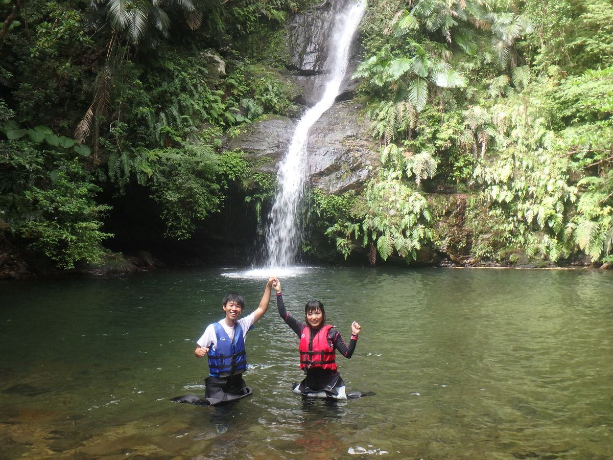 想像以上に全身ずぶ濡れになりますので着替えとタオル、若しくはビーチサンダルと水着着用をおすすめします。本当濡れます。