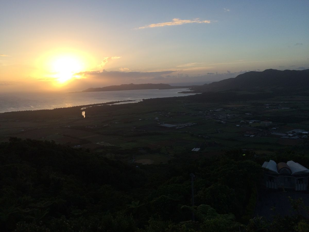 夜のツアーでしたが、初めはまだ明るく懐中電灯も不要なほどでした。展望台から夕焼けを見たり、鳥の声に耳を澄ませ、大きなこうもりが飛ぶのをみたり。。。植物も、本島では見たことがない南国特有の植物がたくさんあり、名前を教えていただいたり、食べれる植物については味見をしたり、初めての体験でした。