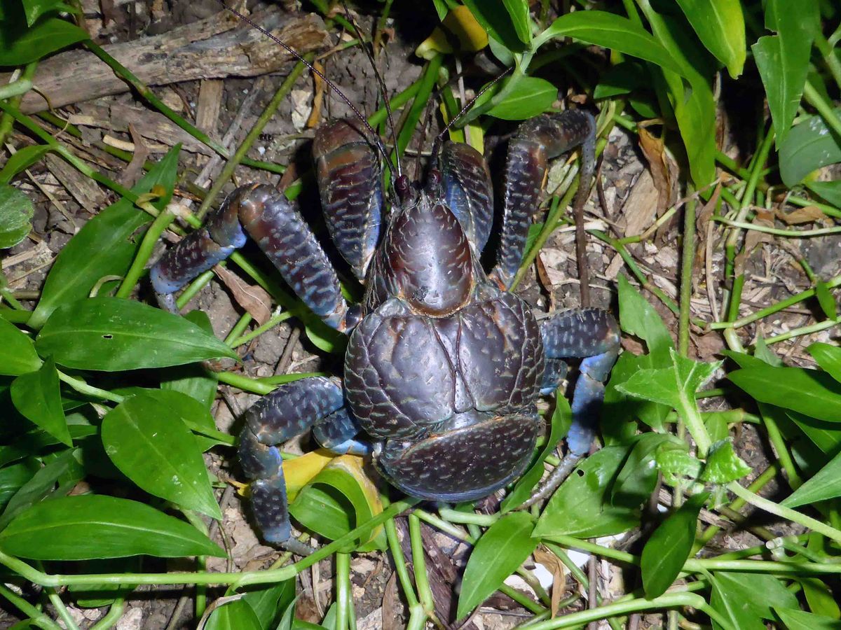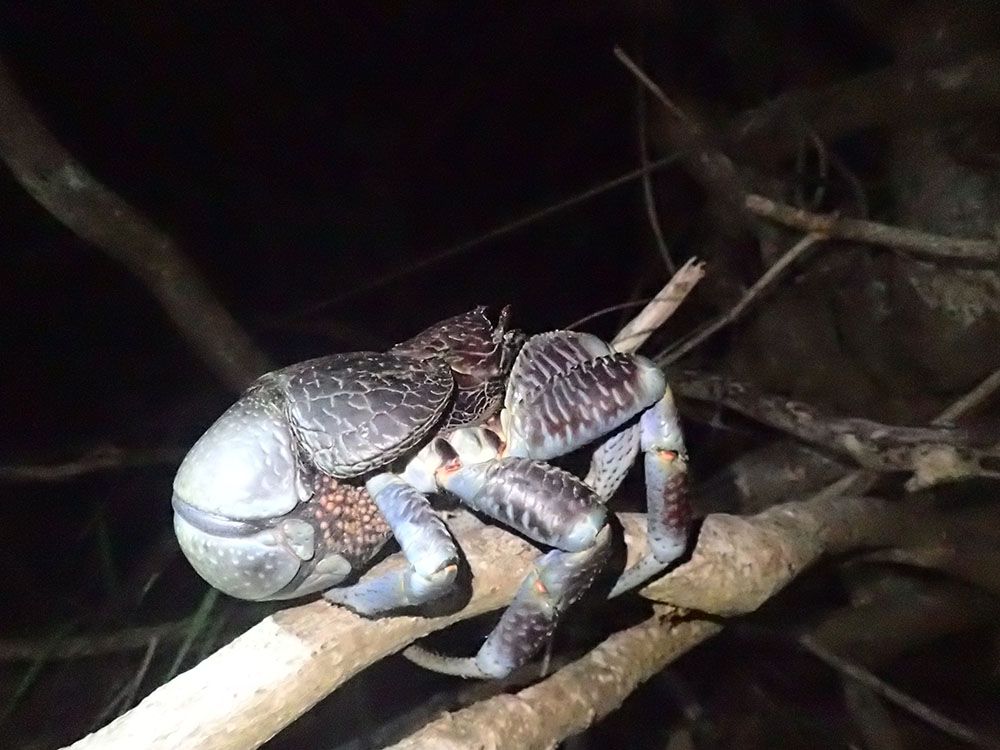 日が暮れて暗くなってからは海辺へ移動して、ヤシガニ探しをしました。
