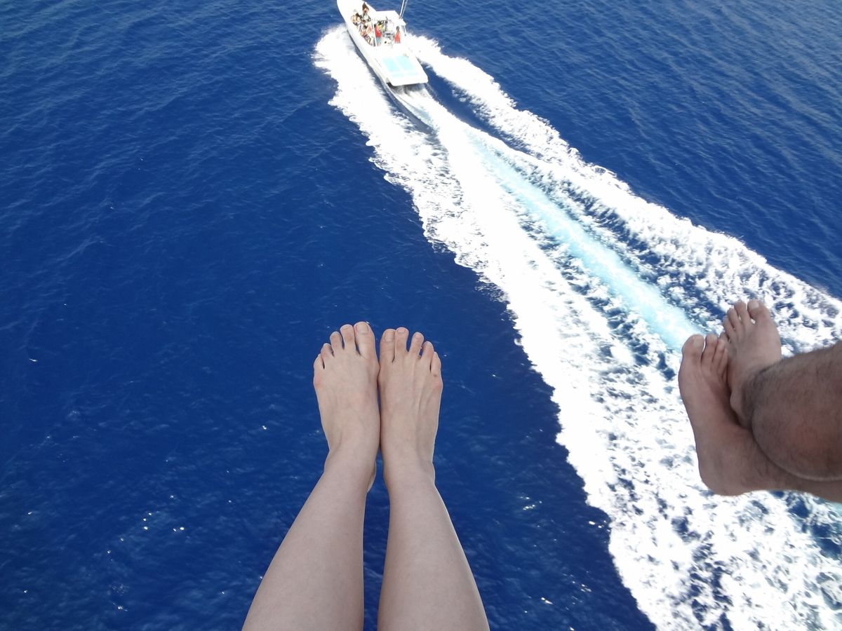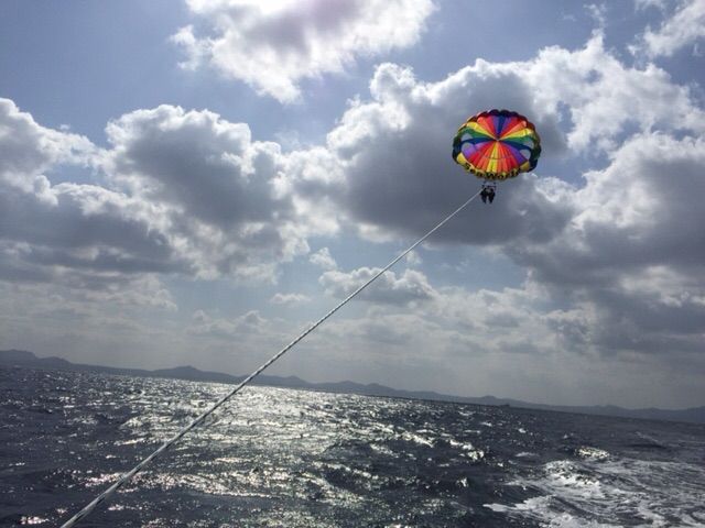 泳げないのでパラセーリングに挑戦しました。最初は少し怖かったけど、全くでした!すっごくいい思い出になりました!またやりたいです。