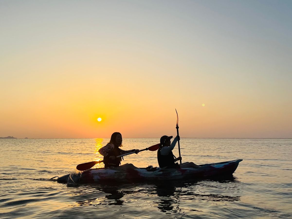久しぶりのカヤック体験だったのですが、乗る前にカヌーの基本動作を教えて下さり、心配なく乗ることができました。また体力や楽しみ方など、こちらの様子を気にかけてくださり、無理なくめいいっぱい楽しむことができました。カヤックが座椅子付きでしたので、お尻が濡れることなく快適でした。このカヤックなら腰痛の方も身体に負担なく乗れそうだと思いました。宮古島出身のガイドさんならではの案内をして下さり、自分では思いつかないような海の見方ができました。海から見えるサンセットは、普段と目線が異なり新鮮でとても美しかったです。どす(友達)と見た宮古島の景色は心に焼きついて一生忘れないと思います。