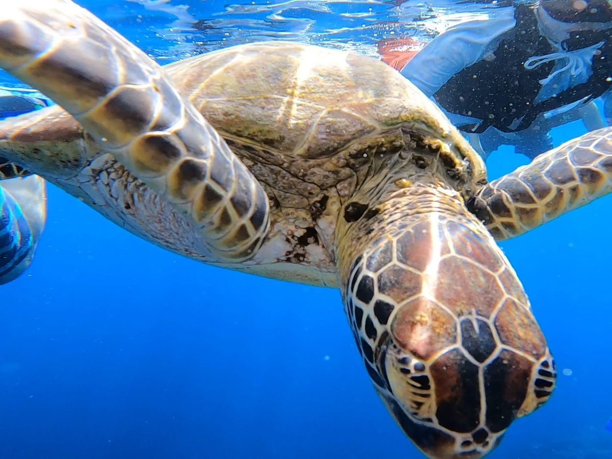 初めての石垣島旅行で、3兄弟(4年生、2年生、年長)と母4人で今回こちらのツアーに参加させていただきました。本当にとっても楽しく幸せな時間を過ごすことが出来ました。色鮮やかで綺麗な魚たちに沢山会うことができ、ウミガメ、ウミヘビも見ることができて感激しました。何より終わってからいただいた写真、動画は自分たちで撮ることのできない素敵なものでとても良い思い出になりました。長男は夏休みの自由研究で石垣島で出会った生き物についてまとめその際に写真を使わせていただきました。今回会えたウミガメさんは二匹で写真のウミガメさんはタイマイだとお姉さんに教えていただき、宿題も完成させてることができました!母子参加だったので心配でしたが、担当の優しいお姉さんとお兄さんがサポートしてくださいました。本当にありがとうございます!また石垣島に行く時は是非参加したいです。