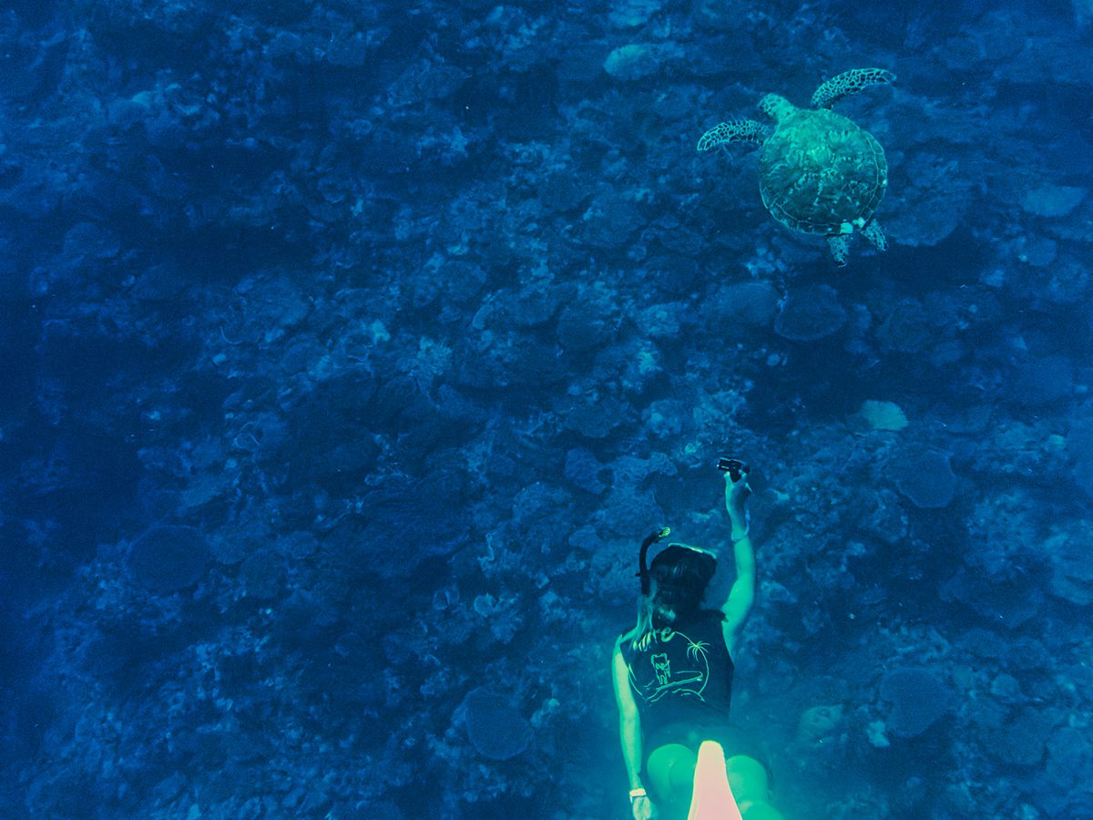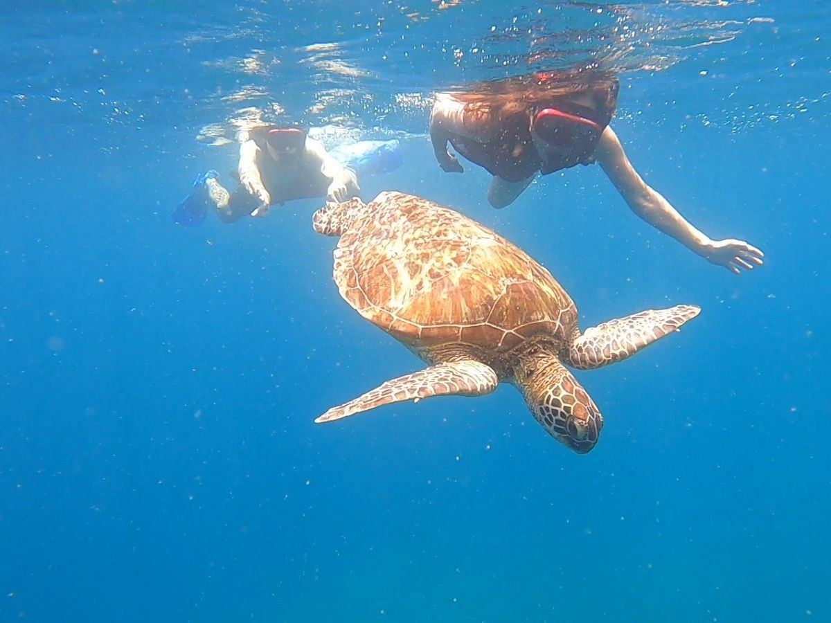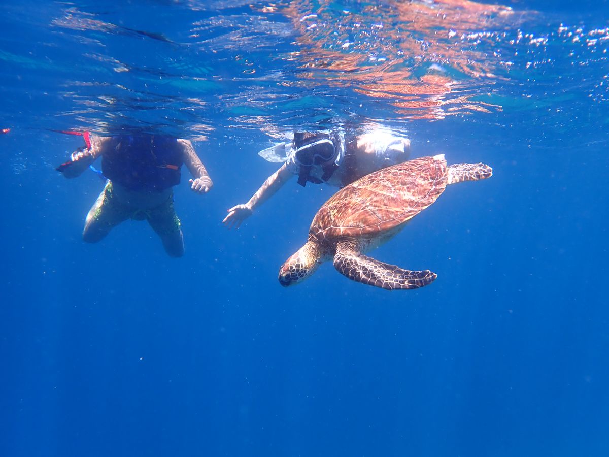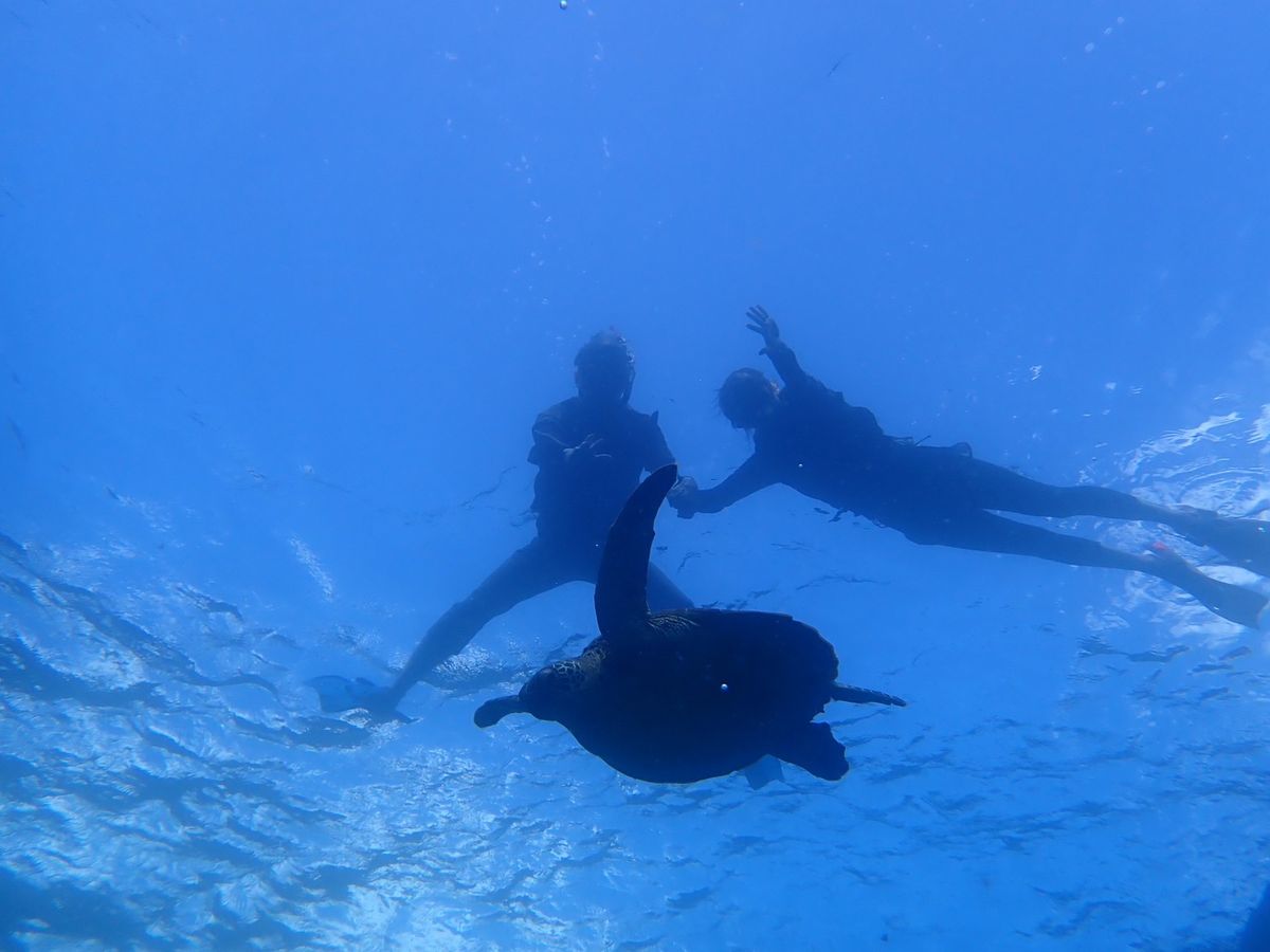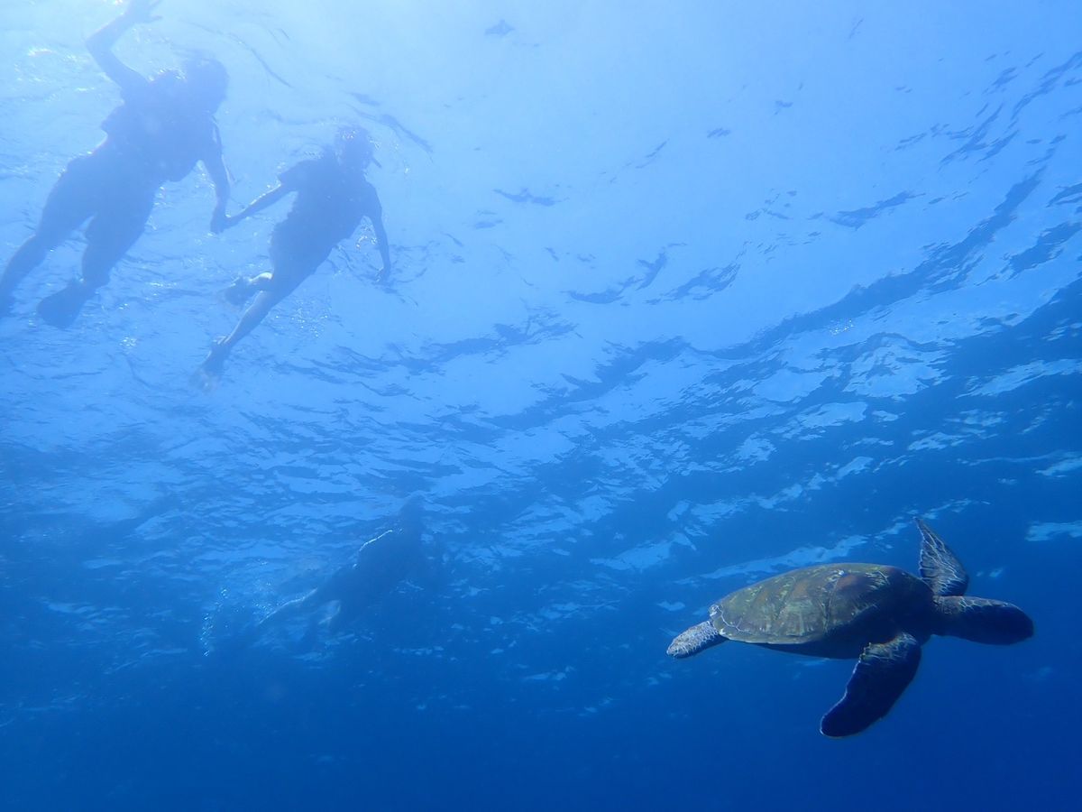 海ガメ2匹にも出会う事ができ、間近で一緒に泳げました。
