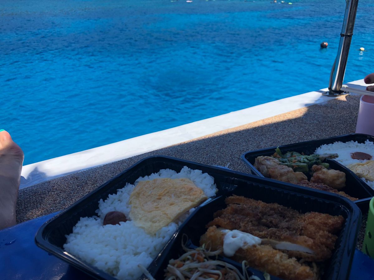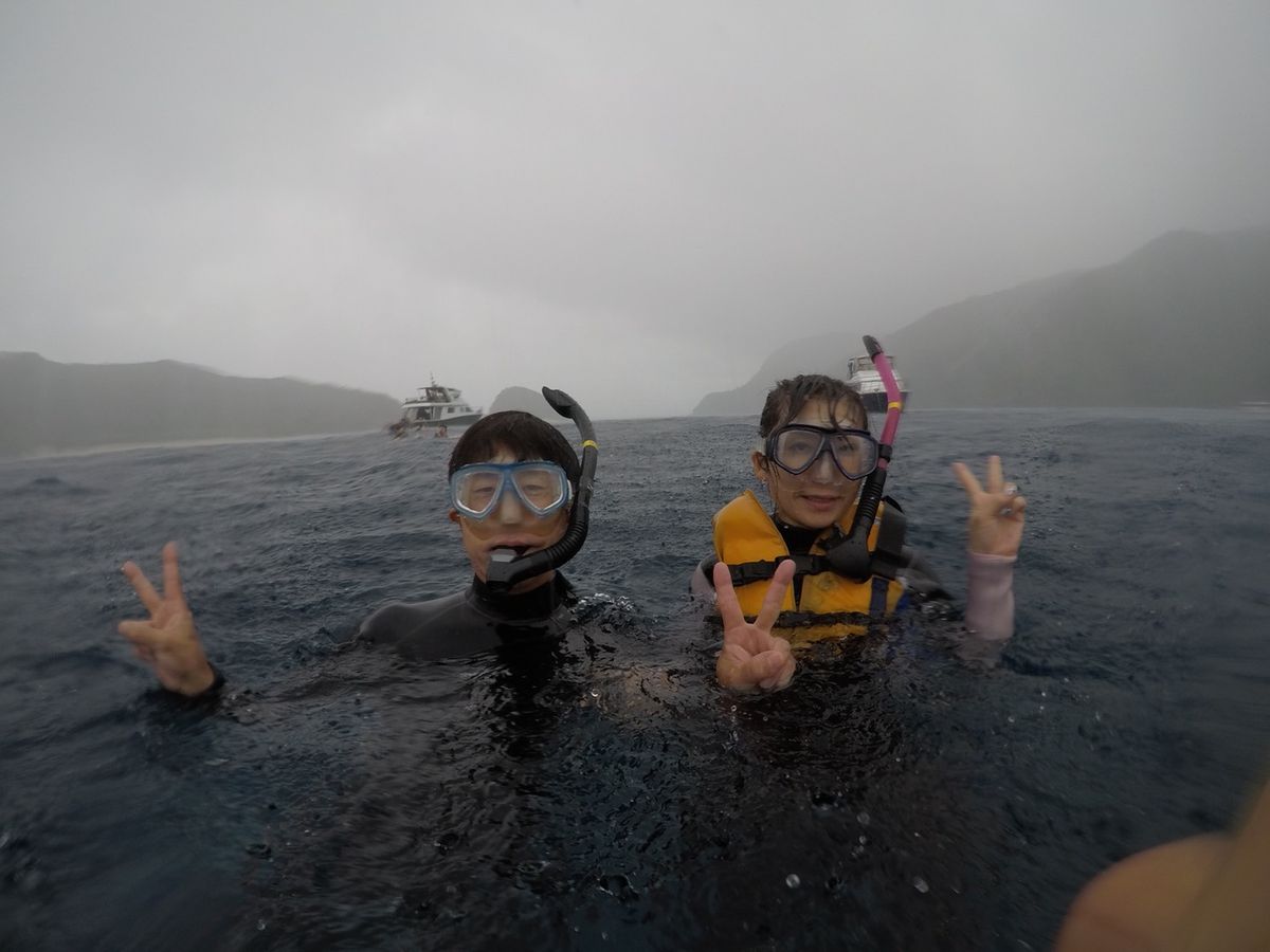 悪天候により慶良間ブルーの海を見ることが出来ず、また三箇所のシュノーケルが二箇所に間引かれ大変残念という事に尽きます。おまけとしては、久米島付近に発生した台風から逃げるように荒波の中を右に左に大揺れし、波のしぶきをこれでもかと飽きるくらいに浴びながら全速で走る船に乗るというアドベンチャー体験ができた事でした。