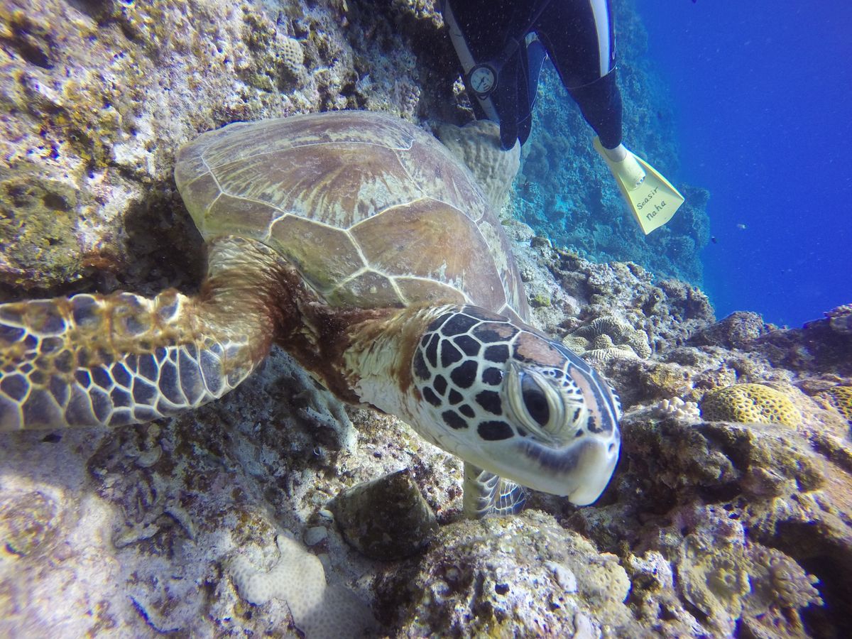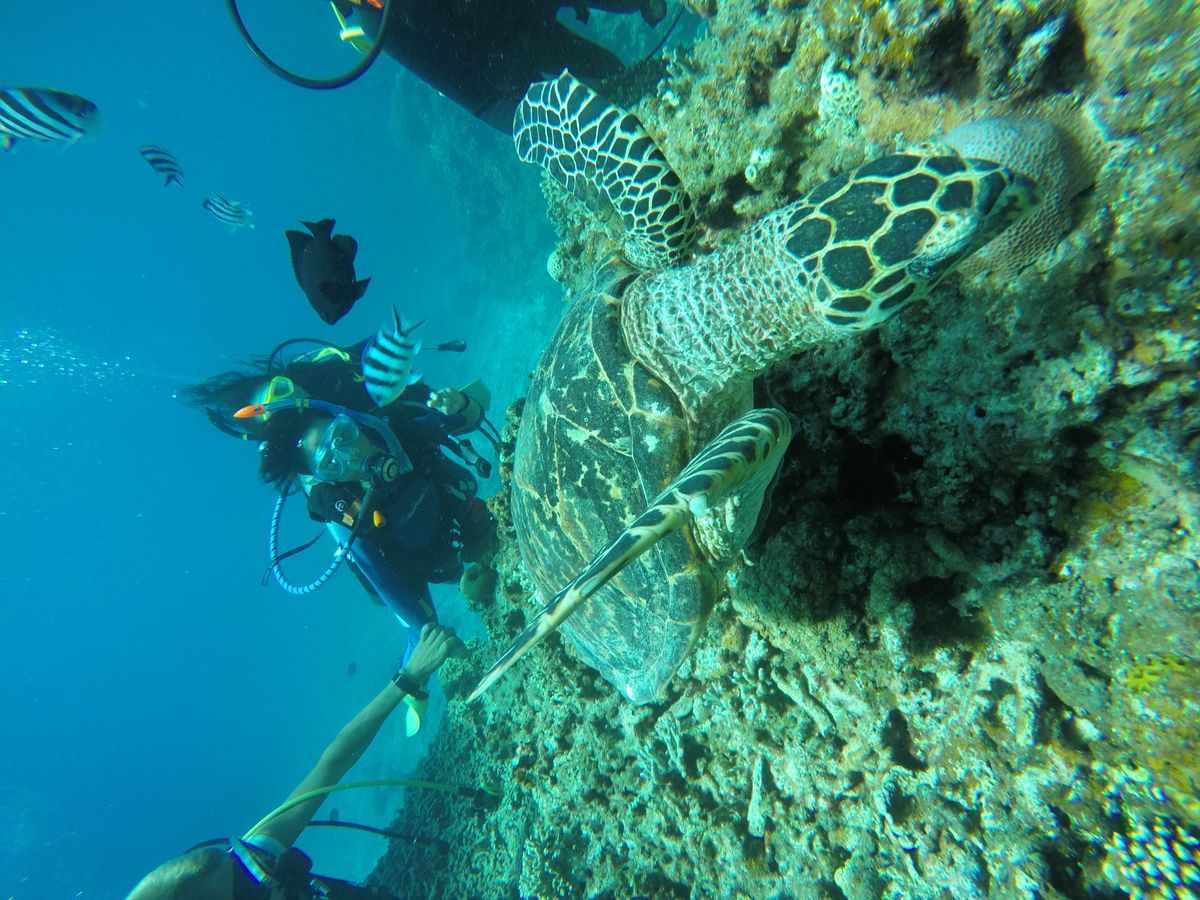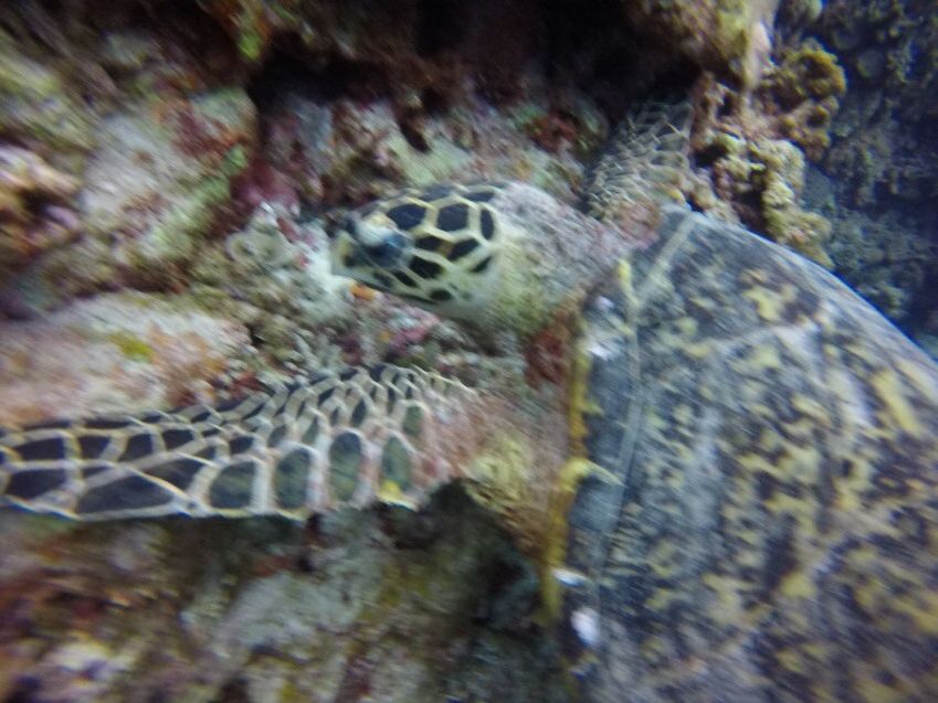 又、シュノーケリングの時に海亀を海面から見れたのですが、ダイビングの時に近くで見たい!という願いをスタッフのみなさんが一丸となって叶えてくれました。沢山泳いで海亀を探してくれたり、発見してからは十分過ぎる程、一緒に泳がせてくれたり、写真を撮ったりしてくれました。