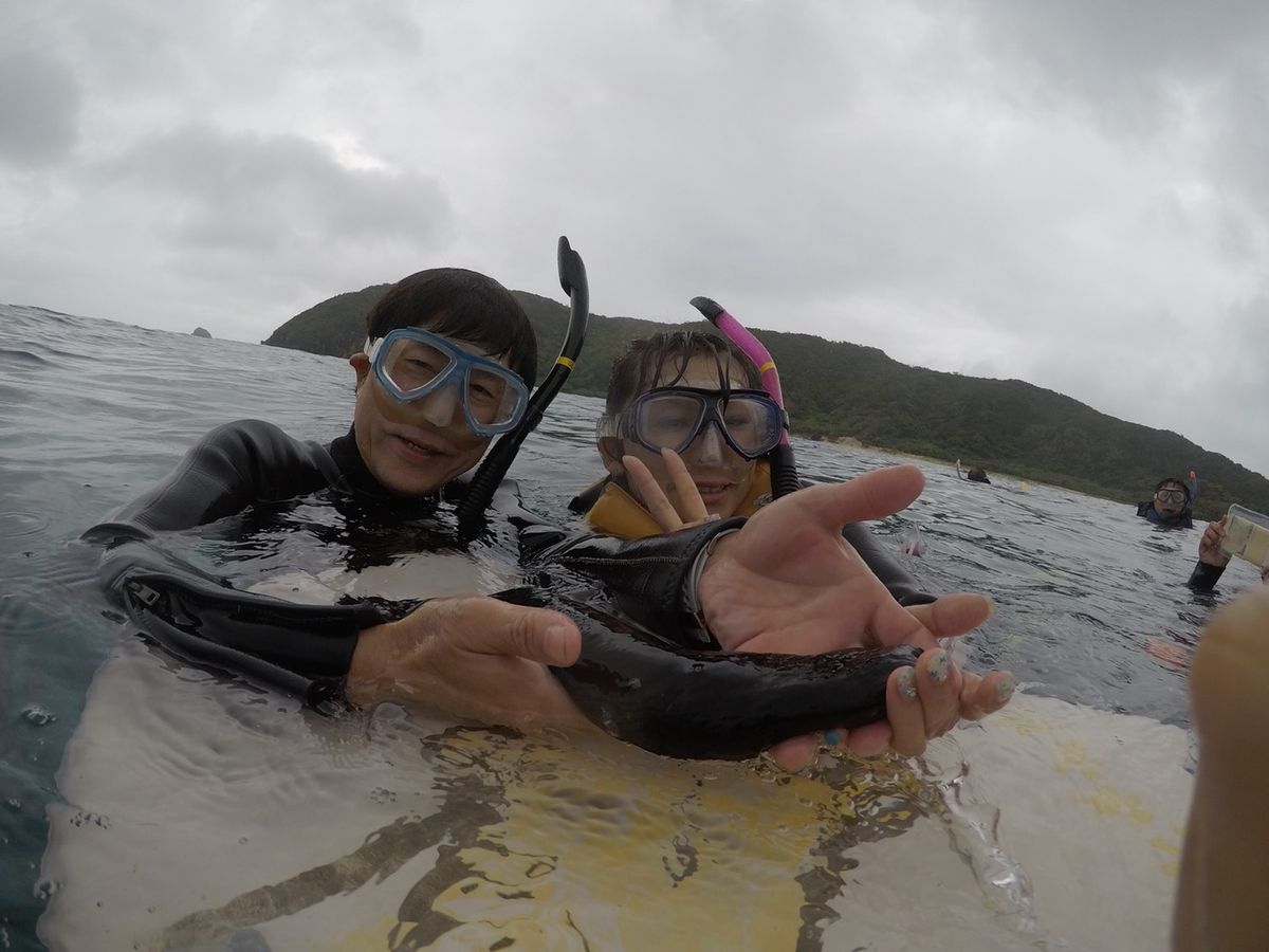 慶良間1日シュノーケルツアーに参加しました。一緒に行った友達がシュノーケル初体験だったので少し心配でしたが、ウエットスーツの上に希望者はライフジャケットも装着できたので安心してシュノーケルに臨めました!担当のガイドさんが珍しい魚を教えてくれたり、ヒトデを拾ってきてくれたりして自然に触れ合うことができました。2本目のポイントで二種類の海ガメに会うことができて大満足!!海ガメは寝ていたようでとても可愛かったです!3本目のポイントは流れのある場所のようで体の疲れもあったせいかガイドさんに泳いで着いて行くことで精一杯でしたがそれすらも楽しかったです!疲れてしまった方は船でゆっくり過ごすのも良いかと思います。