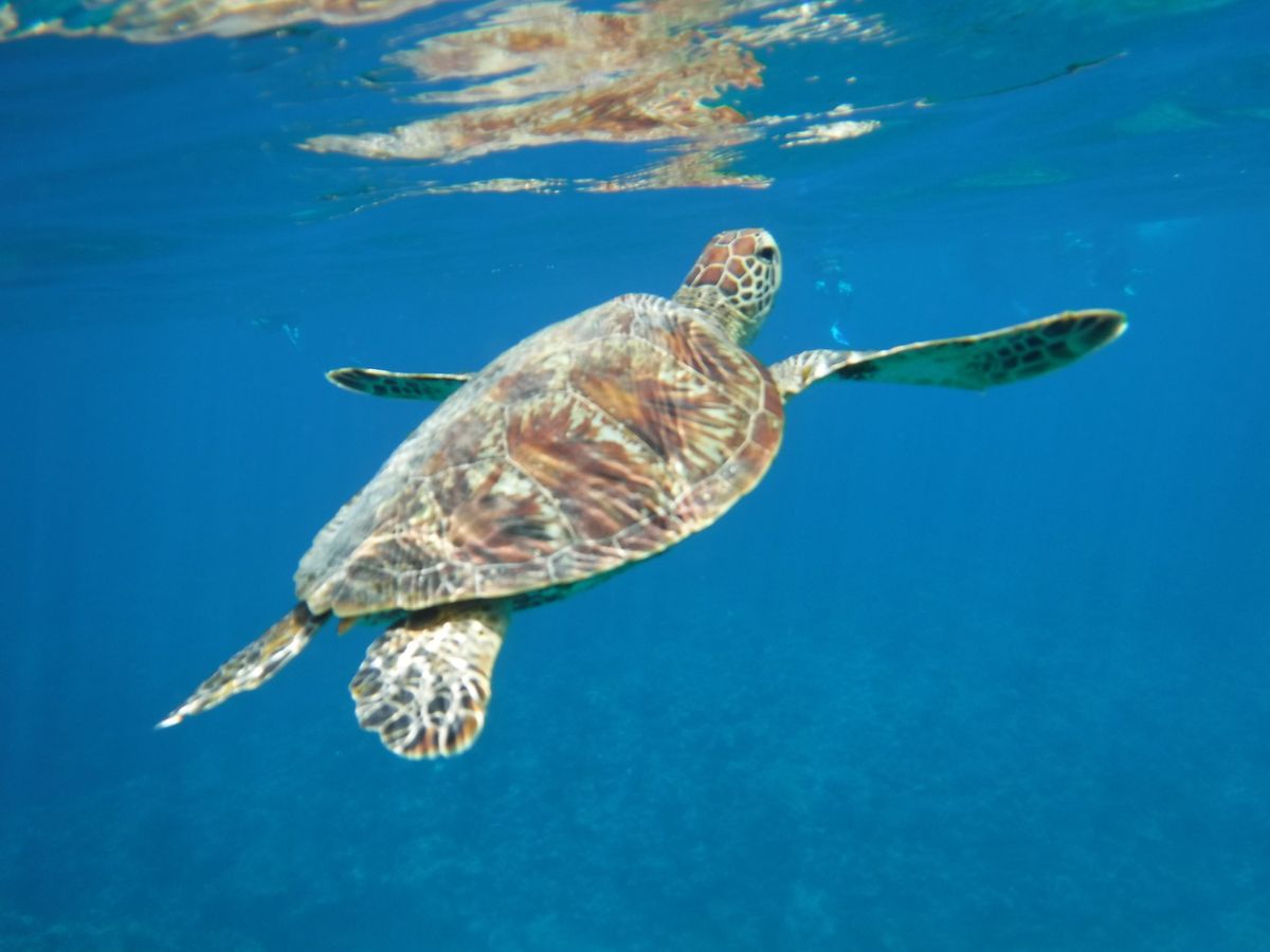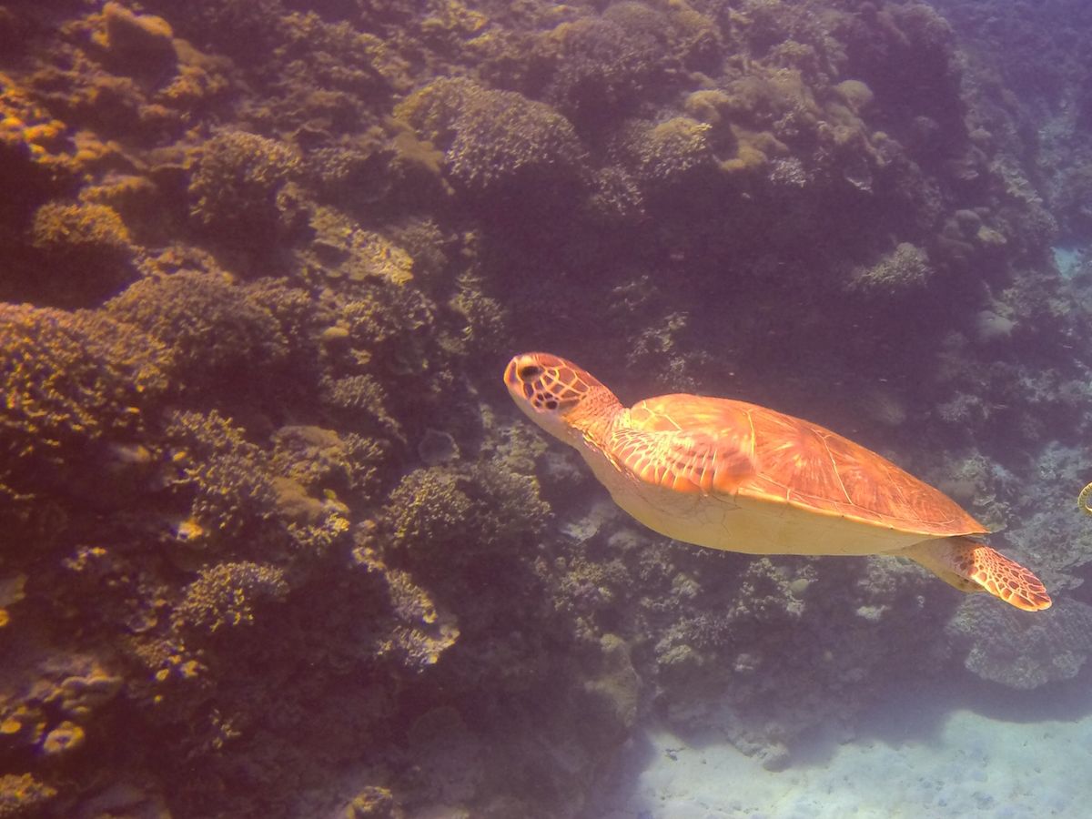 シュノーケル開始後5分で海ガメに出会えたのはすごく運がよかったと思います。