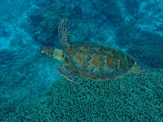 今回シュノーケルで、ウミガメに会えました。最高です!