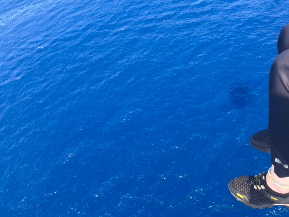 数秒もすると若い子らは小さくなり眼下には信じられないほど青い海…見渡す限りブルーです。