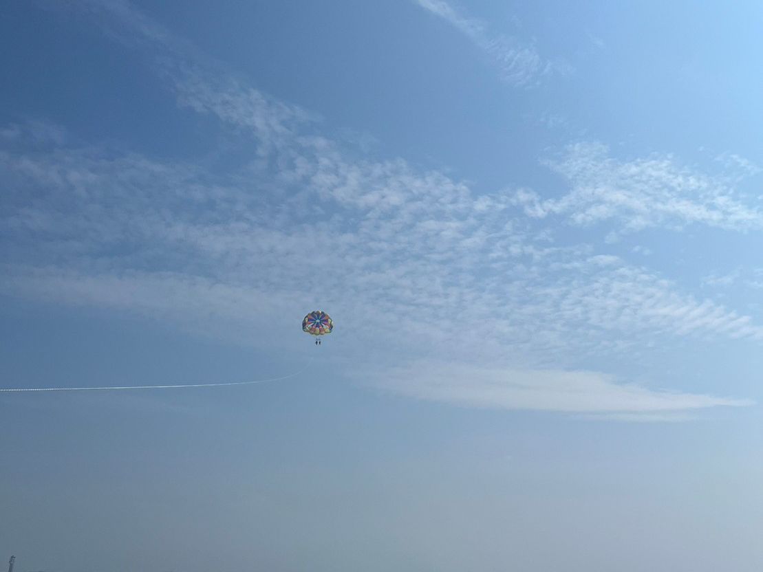 生まれてはじめて友人とパラセーリングを体験しました。綺麗な海を見ながらの移動は本当にあっという間でパラセーリングポイントへつくまでの船酔いを結構心配していましたが、アトラクション気分で楽しみながら移動することができました。いざパラセーリングで飛んだ後の風景は一面の青空と海でとても気持ちがよく、本当に体験してみて良かったと思いました。担当してくれたお兄さんたちもとても親切だったのでこちらで体験させていただいて良かったです。