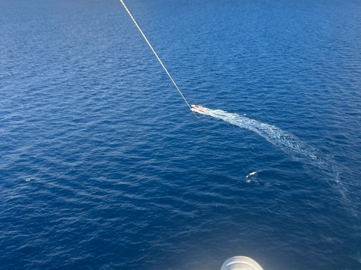 当日、待ち合わせの時間中は雨が降っていたので、パラセーリングは中止になるかもと不安でしたが、出港後しばらくすると雨がやみ、晴れてきて暑いくらいに。