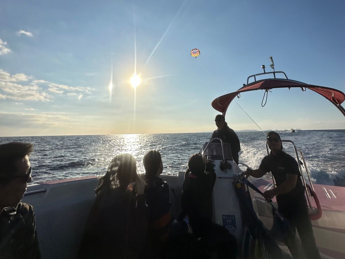 初めてのパラセーリングでしたが、思っていた以上にお手軽に沖縄を満喫できました。たまたまひと組だけの参加で貸切り状態だったのでスタッフのお兄さんが動画をサプライズで撮ってくださいました。いつもあるサービスではないそうですが、状況によって参加者を楽しませる工夫をされていて、ここを選んで良かったです。娘との二人旅の最高の思い出ができました!ありがとう!