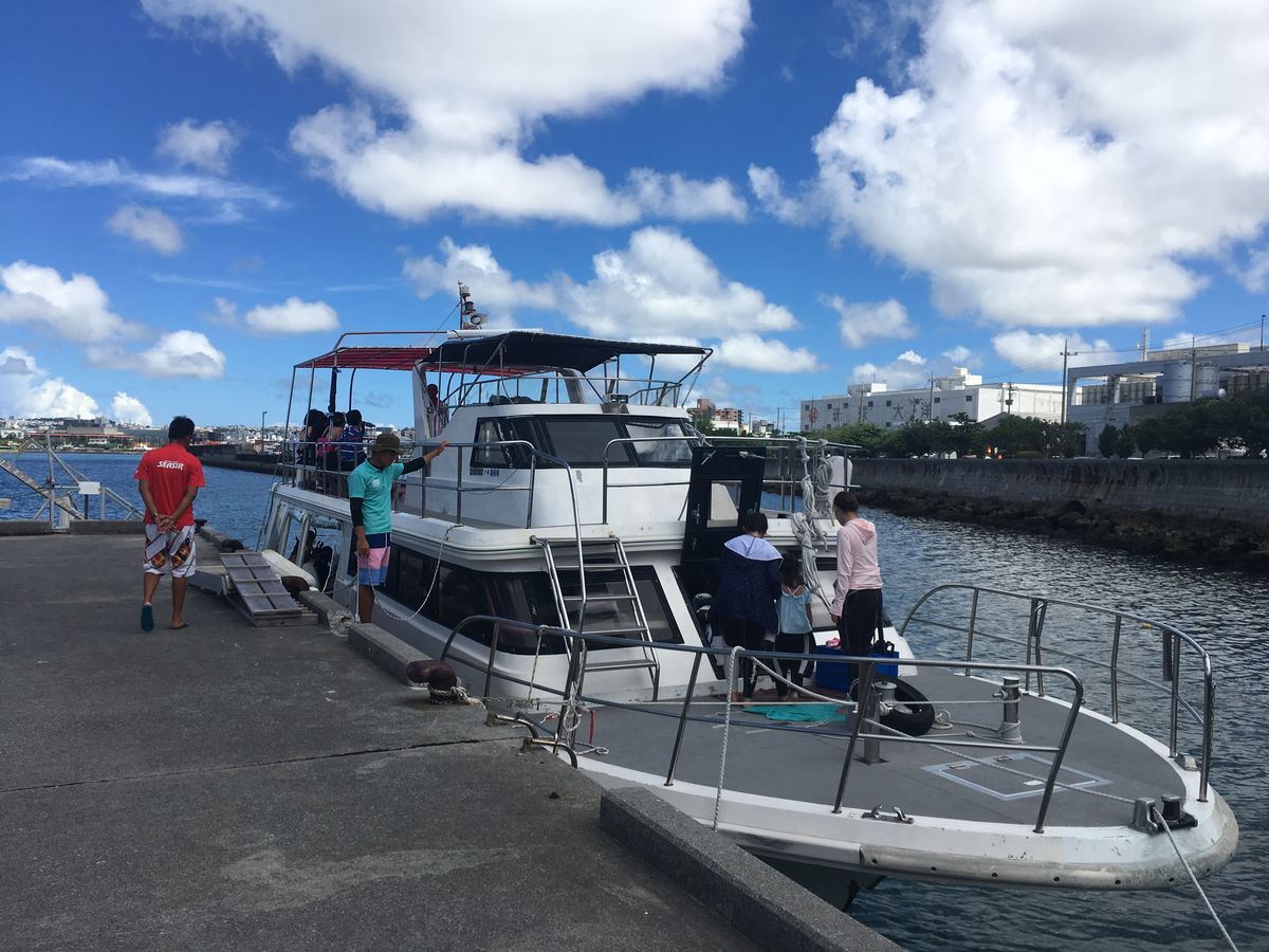 朝は那覇市内のホテルへ集合時間ちょうどに迎えに来ていただき、着替え等を済ませて港へ。
