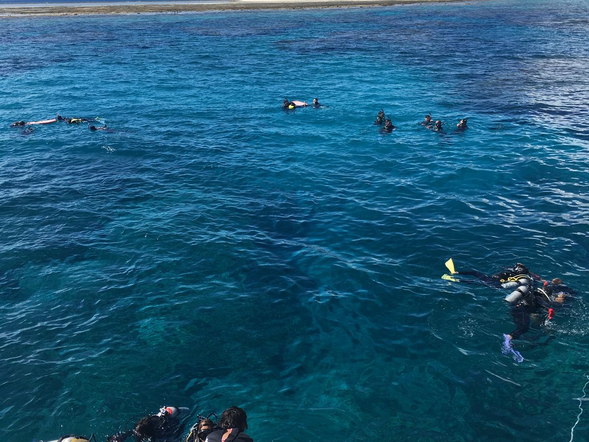 20分くらい?でポイントに到着。スタッフの方が先に海に入って確認してました。すると戻ってきて、視界が悪いのでポイント移動します。と。船の上からは十分綺麗に見えるのに、わざわざポイントを移動してくださいました。次に到着したポイントは、さっきの場所より船の上からもサンゴが見れるくらいほんっとに綺麗な場所でした。より綺麗なポイントで泳いでもらおうって気持ちがとても嬉しかったです。