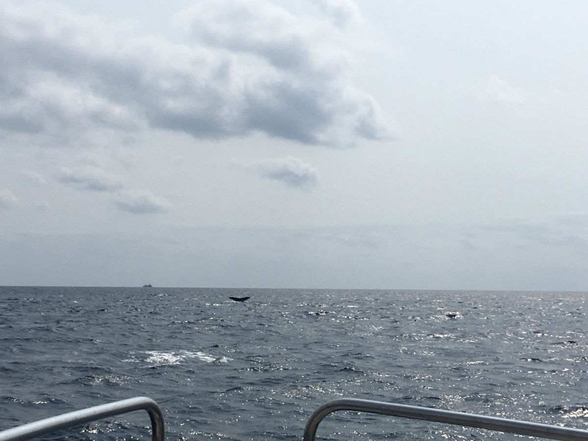 帰りにはホエールウォッチングの船と一緒に、クジラを見ることができました。