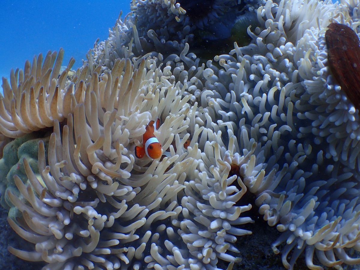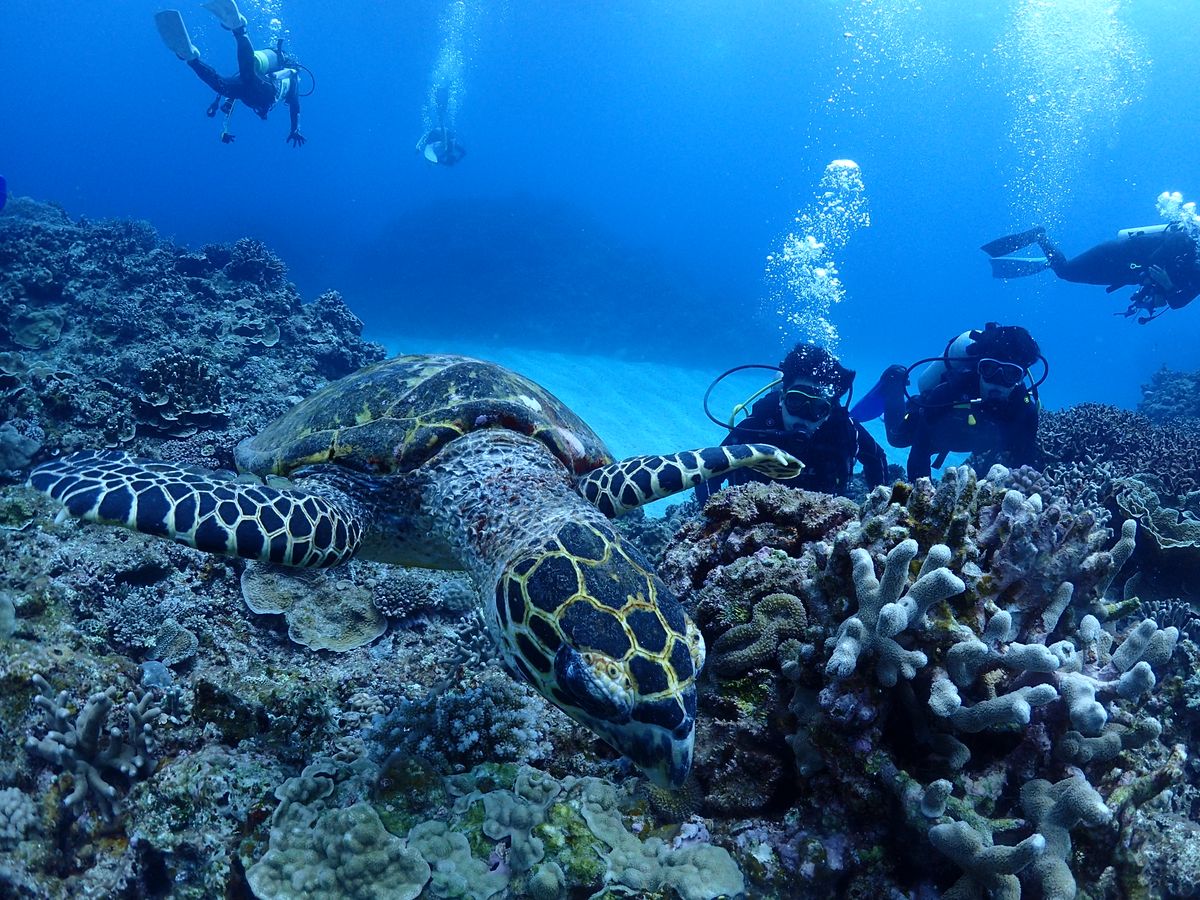 今回はダイビングを2回、シュノーケリングを1回体験したところ、ダイビング2回目ではクマノミ・チンアナゴ・タコなどを、シュノーケリングではウミガメを見ることができました。