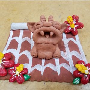 作成方法のビデオを見て、それに沿って粘土で形を作って、乾かして、色をつけるという流れでした。いい思い出になりました。