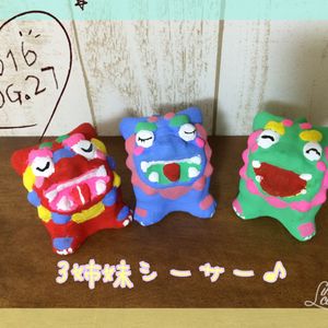 家族3人でシーサー作り〜色付け体験に参加しました。完成まで2時間半位かかってしまいましたが、とても楽しくあっという間のひと時でした。出来上がりも大満足でした。