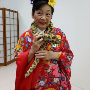 ショートカットの髪の毛も、ウィッグとお花でカンプー風に仕上げてもらえました。