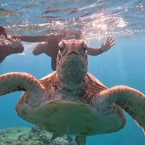 いざ海に入ってみると写真のような大きいウミガメと一緒に泳ぐことができて大満足です。