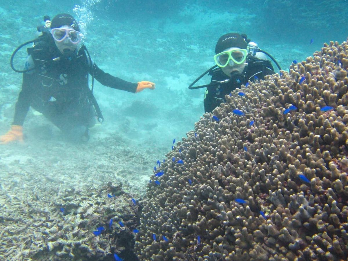 初ダイビングでちょっとドキドキでしたが、インストラクターの方が丁寧に教えてくださるので、安心して楽しく潜れました!前日雨で海が濁っていたようですが、全然気にならないくらいきれいでした!良い思い出になりました^^