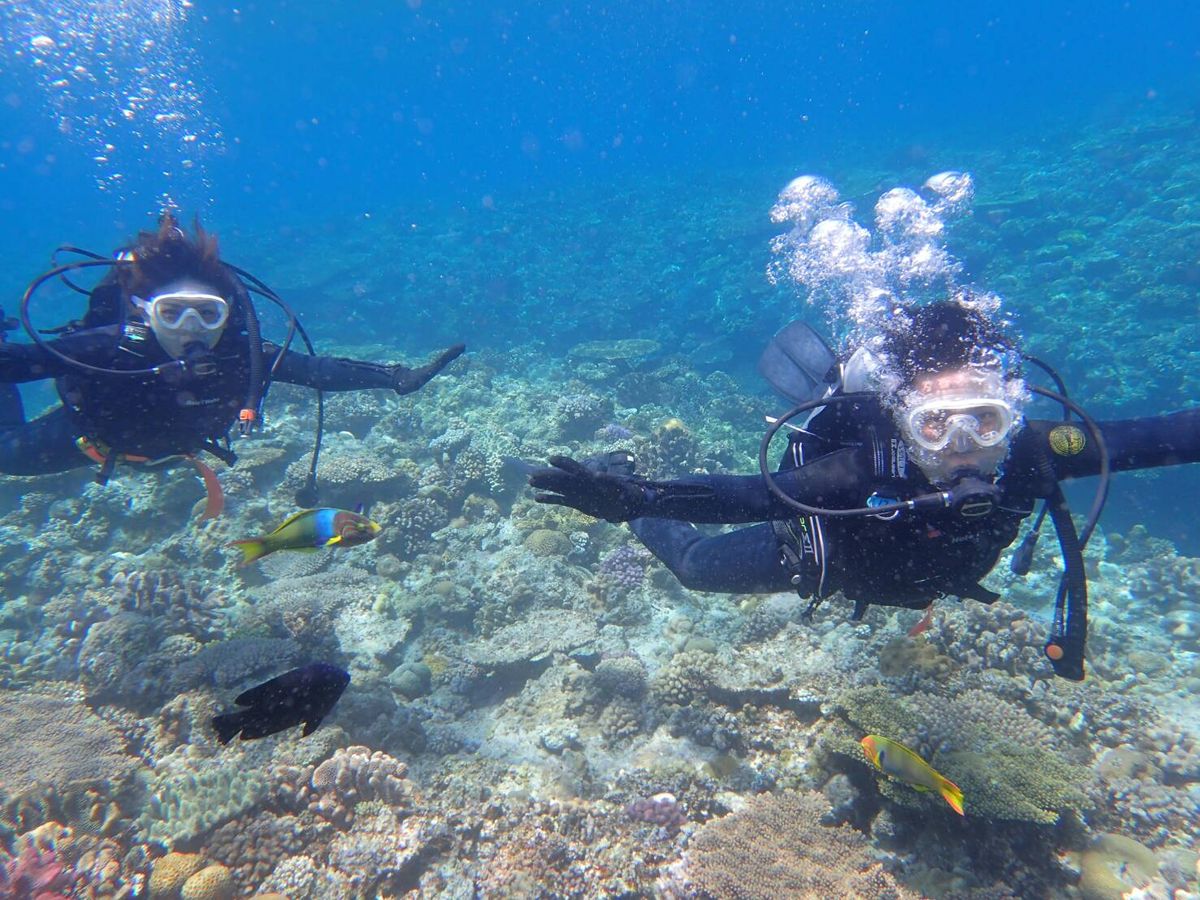 1人に1人づつインストラクターが付いてくれて、安心して潜れました。妻が船酔いしてしまいなかなか潜れなかったのですが、丁寧に付き添っていただいて、一緒に潜ることができて良かったです。