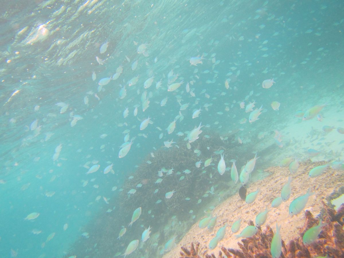 海の中はとてもキレイで、カラフルな魚と一緒に泳ぐひと時は最高でした。